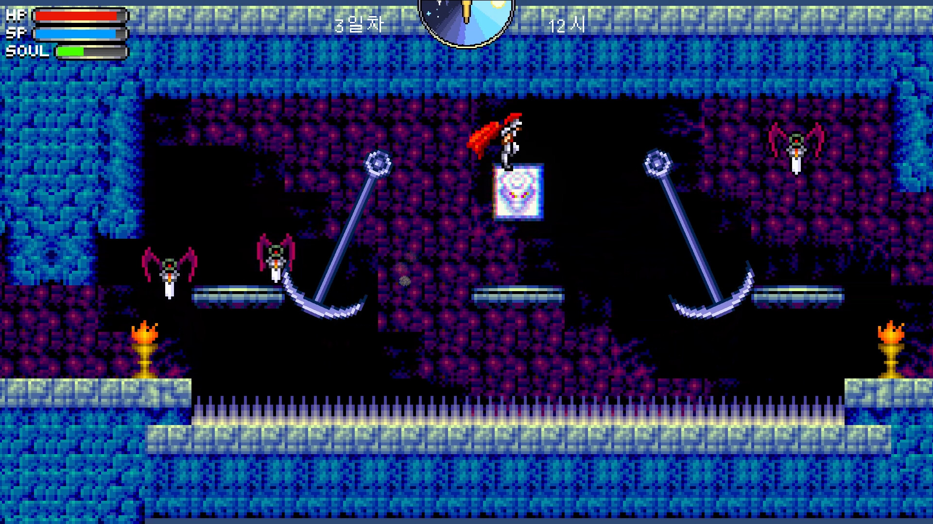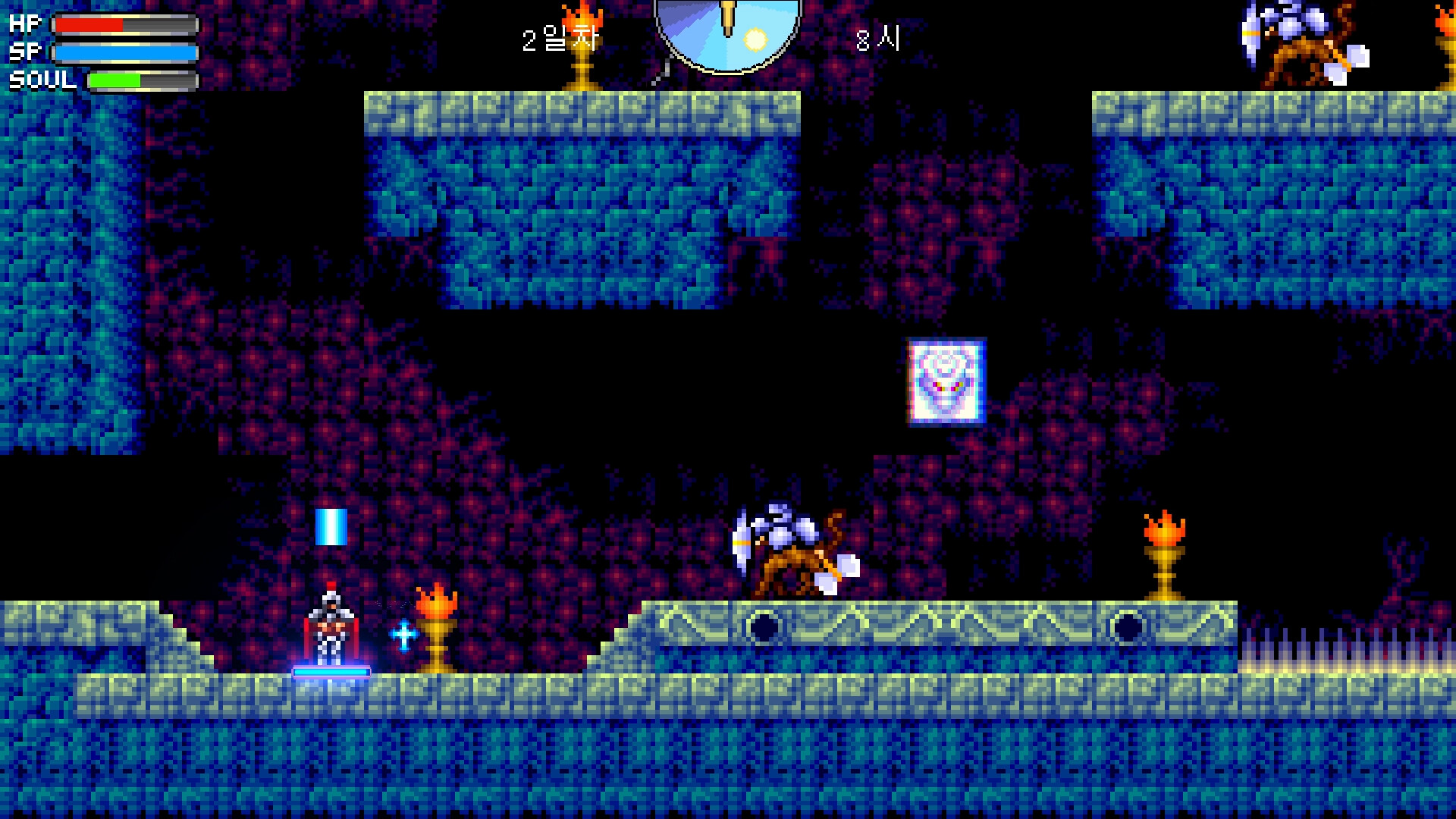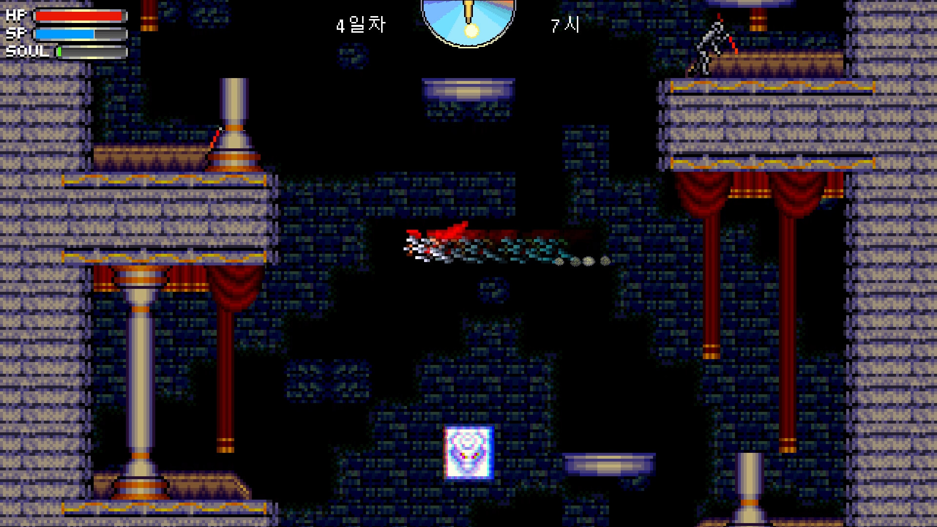 Night Castle faithfully delivers the essence of classic Metroidvania—exploration, collection, and hidden areas unlocked by new abilities—while introducing a unique twist: time management.