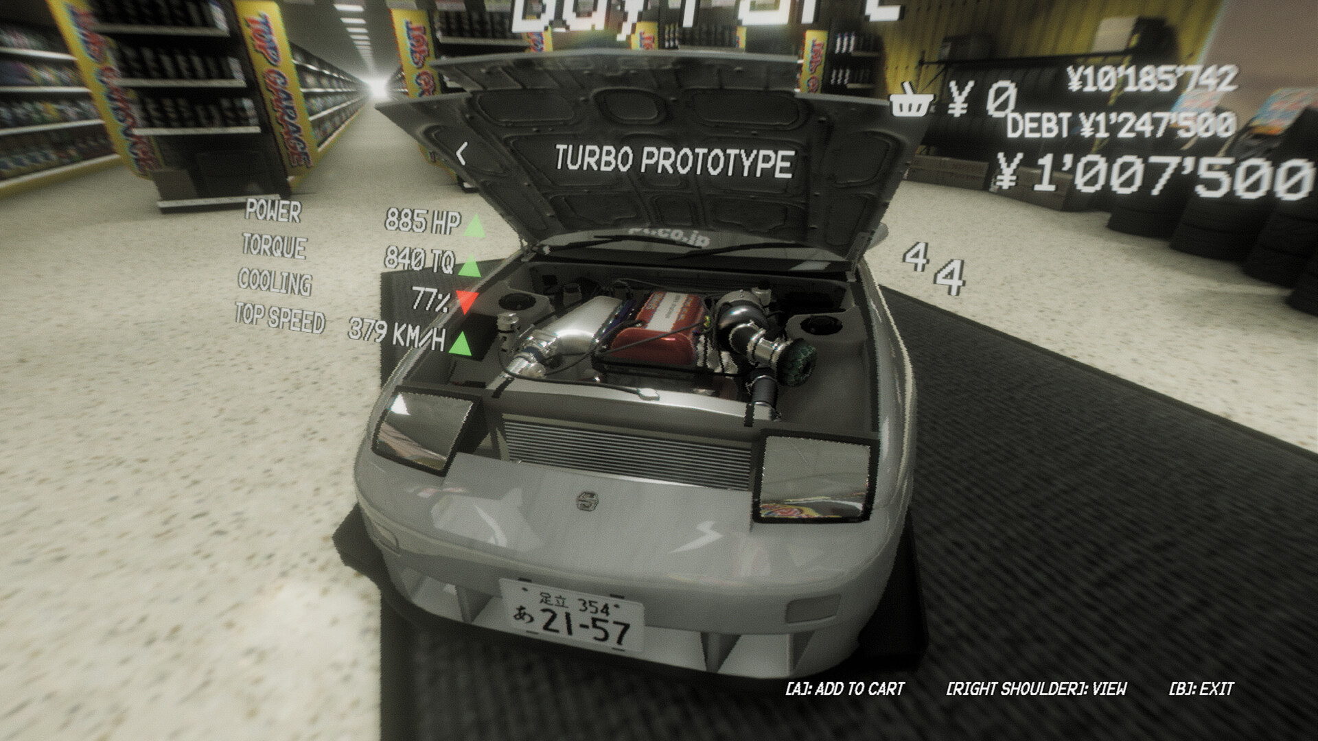 Take parts off your cars, place them into storage and sell them for some extra cash or transfer them onto another vehicle you own. When you have some spare cash, take a trip to "Top Garage" to buy some new parts for your exterior, interior, wheels, engine and/or handling.