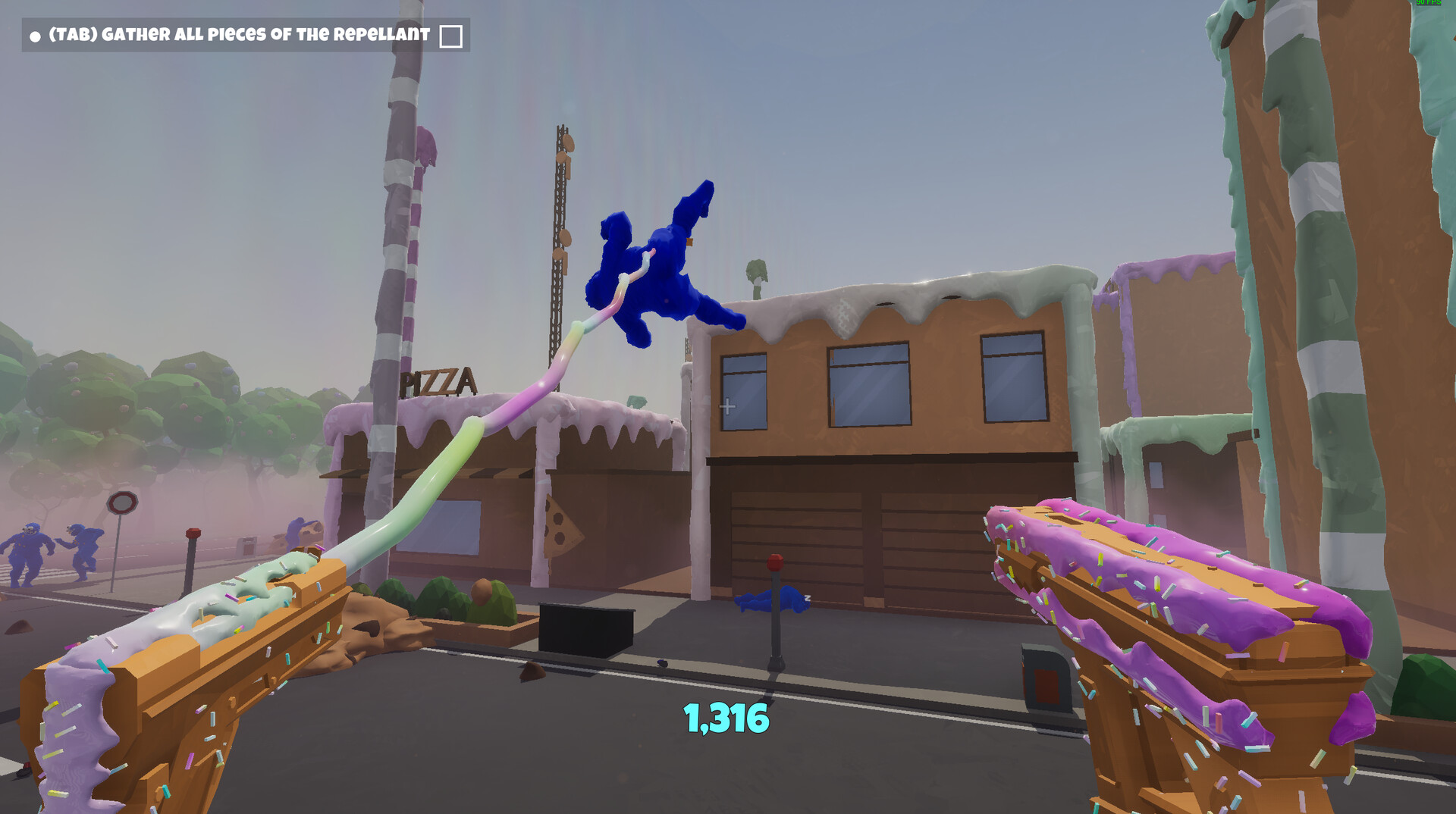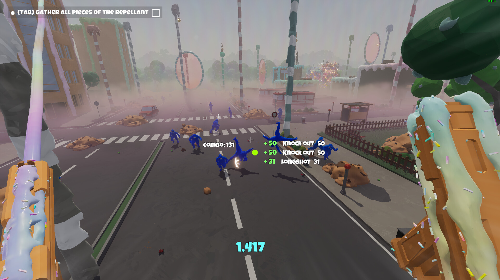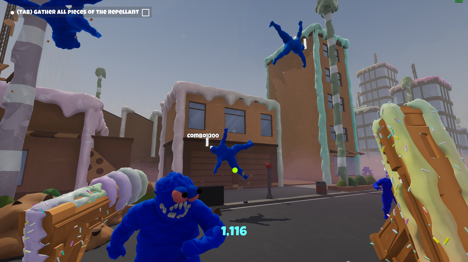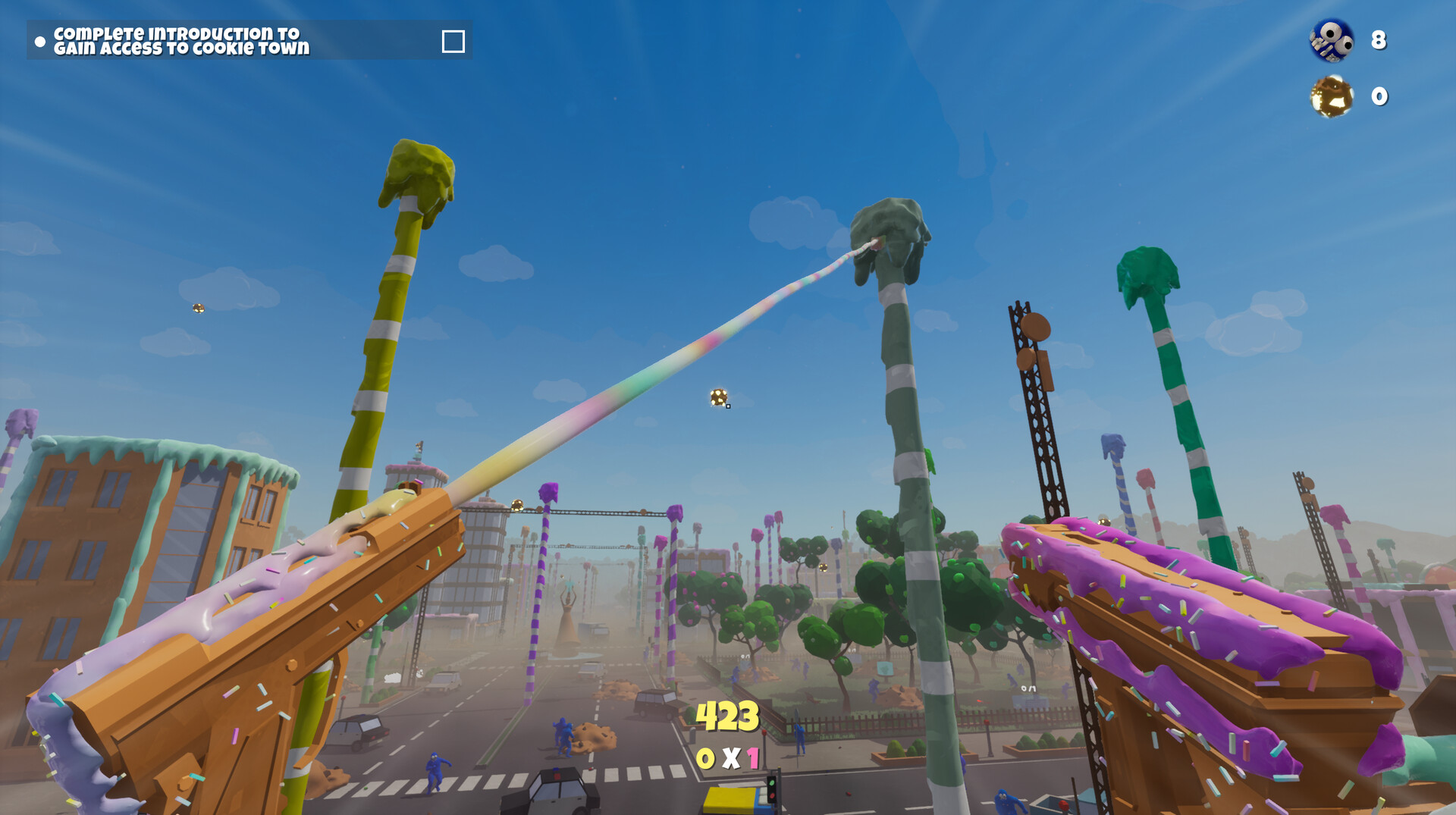 Disaster has struck Cookie Town! The once-sweet and peaceful city is being devoured by dancing, cookie-eating monsters! With the town’s legendary Broccoli shattered and scattered, nothing is stopping the crazed horde. As the towns last hope, you must grapple, shoot, and puzzle-solve your way through the chaos—recovering lost broccolis, fighting monsters, and mastering physics-based challenges to save Cookie Town before it crumbles!