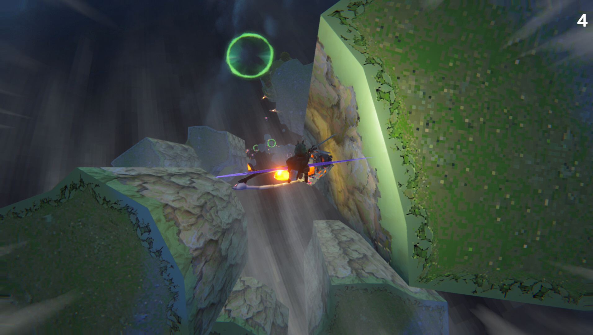 Fly across worlds in pursuit of tainted souls that will corrupt the realms they inhabit. Boost your speed by following their trails and battling their creations, while dodging obstacles in your hunt.