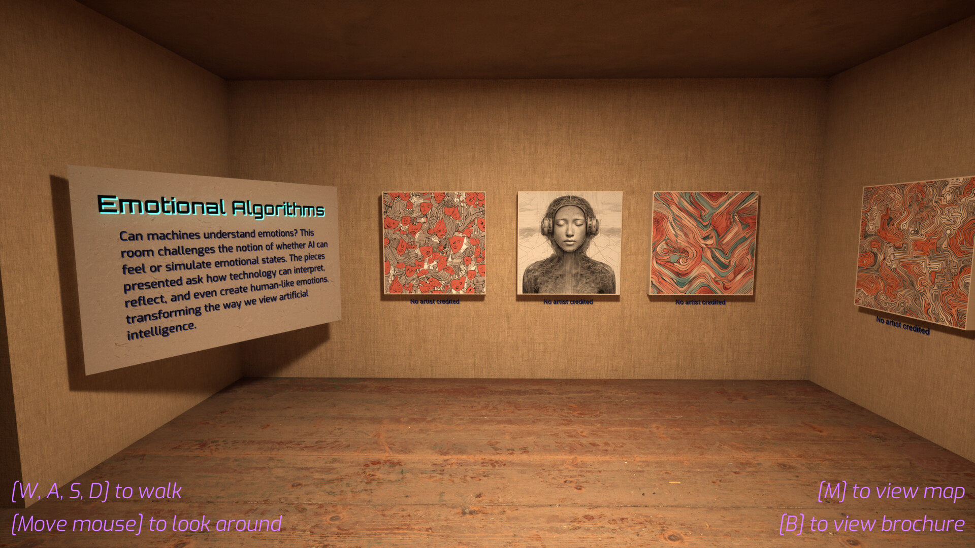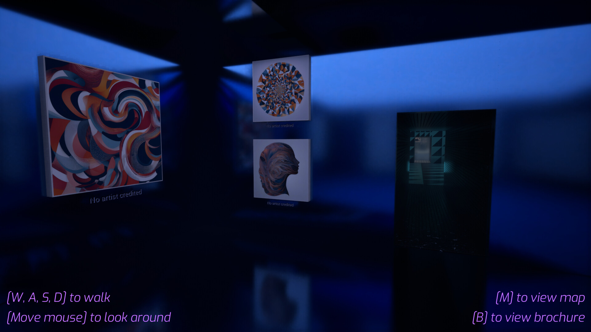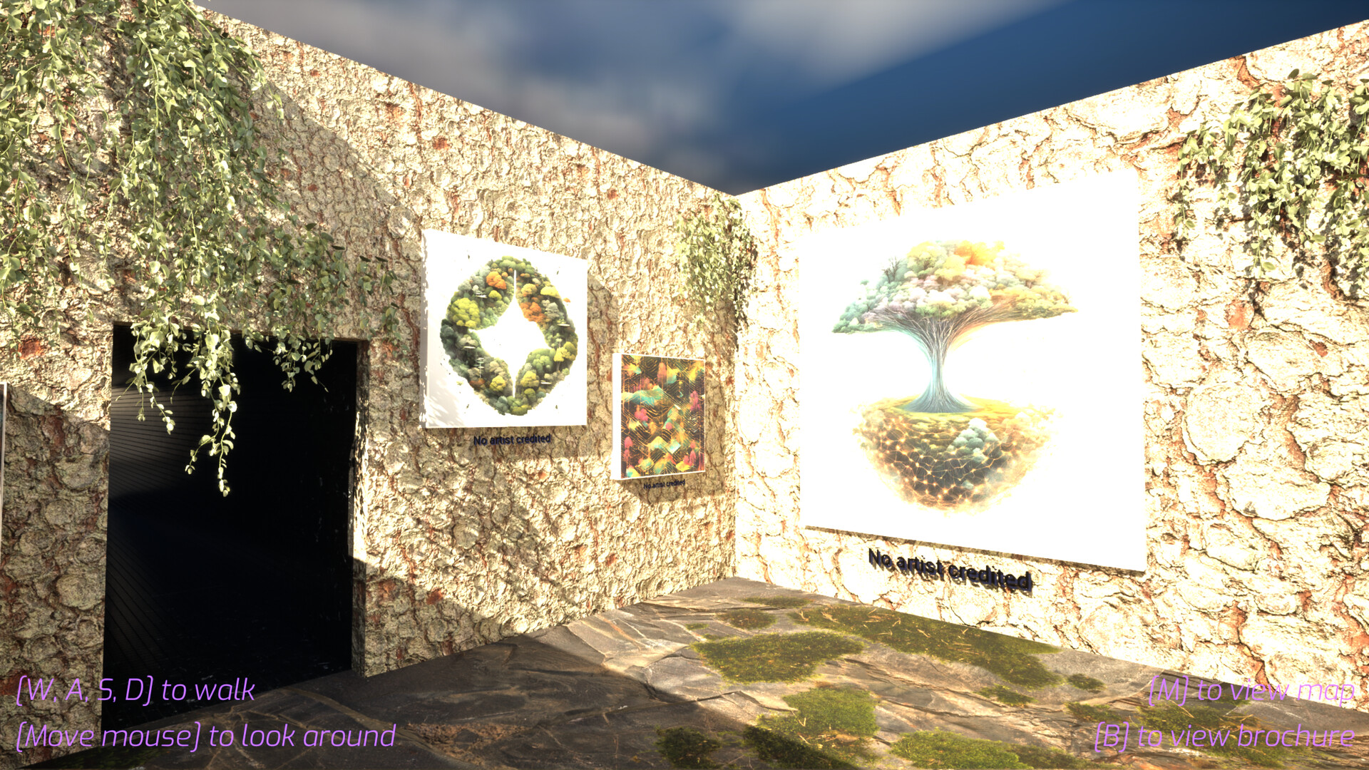 I developed the game as a walking simulator to invite guests to peruse the digital art in its natural habitat (digitally) as one might visit an art museum.