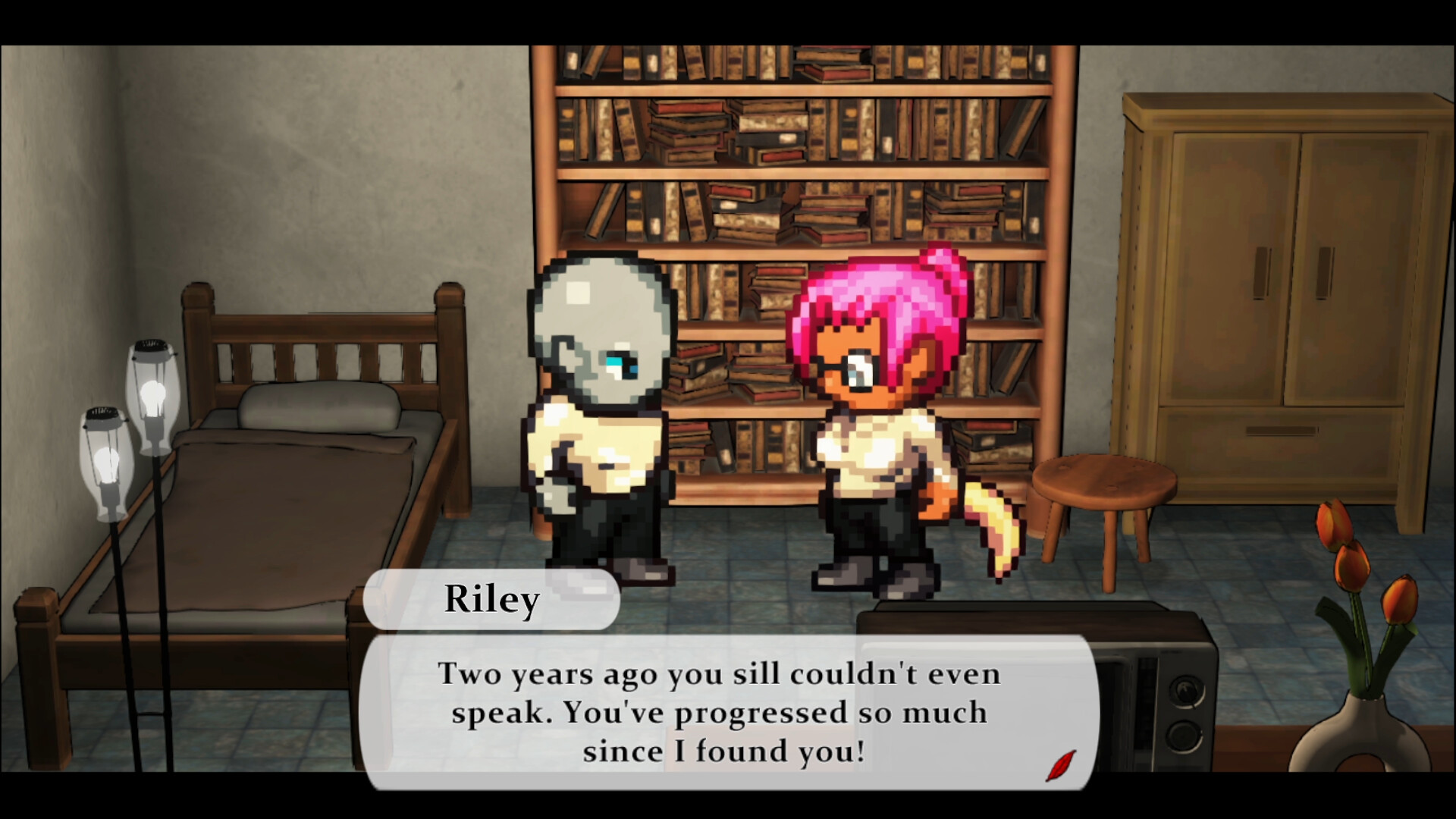 Nocturnal Visitors: Book One boasts a visual style inspired by games of the late 2000s, with graphics straight out of the seventh generation of consoles. It's a nostalgic look into the games that we 2000s kids grew up with.