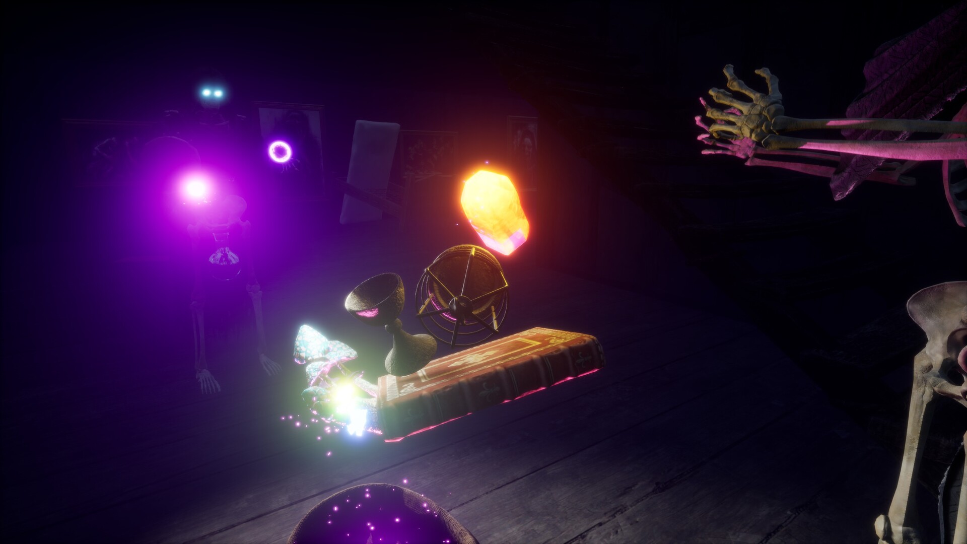 You play an alchemist investigating hauntings to extract magical energy (noox) from spirits. Travel to different haunted locations and stop the evil presence. Utilizing some fantasy twists on classic ghost investigation tools like an EMF reader of glowing mushrooms, track the ghost and collect the energy it infuses into objects that it has interacted with. Once enough information has been collected, assemble the necessary runes to capture the ghost on your trap and bring the ghost back to your workshop to complete your collection and unlock new abilities.