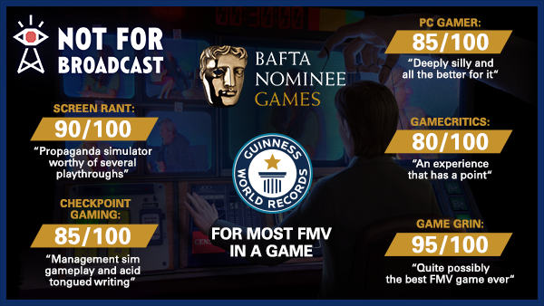 Not For Broadcast drops you into the heart of a darkly-comedic tale of televised chaos, where your every decision helps shape the fate of a nation. From ego-fueled celebrities to deceptive politicians and enigmatic advertisers - you control the public’s perception. As long as you can hold the audience’s fickle attention, it’ll be your choice whether to toe the party line or hype up the scandal.