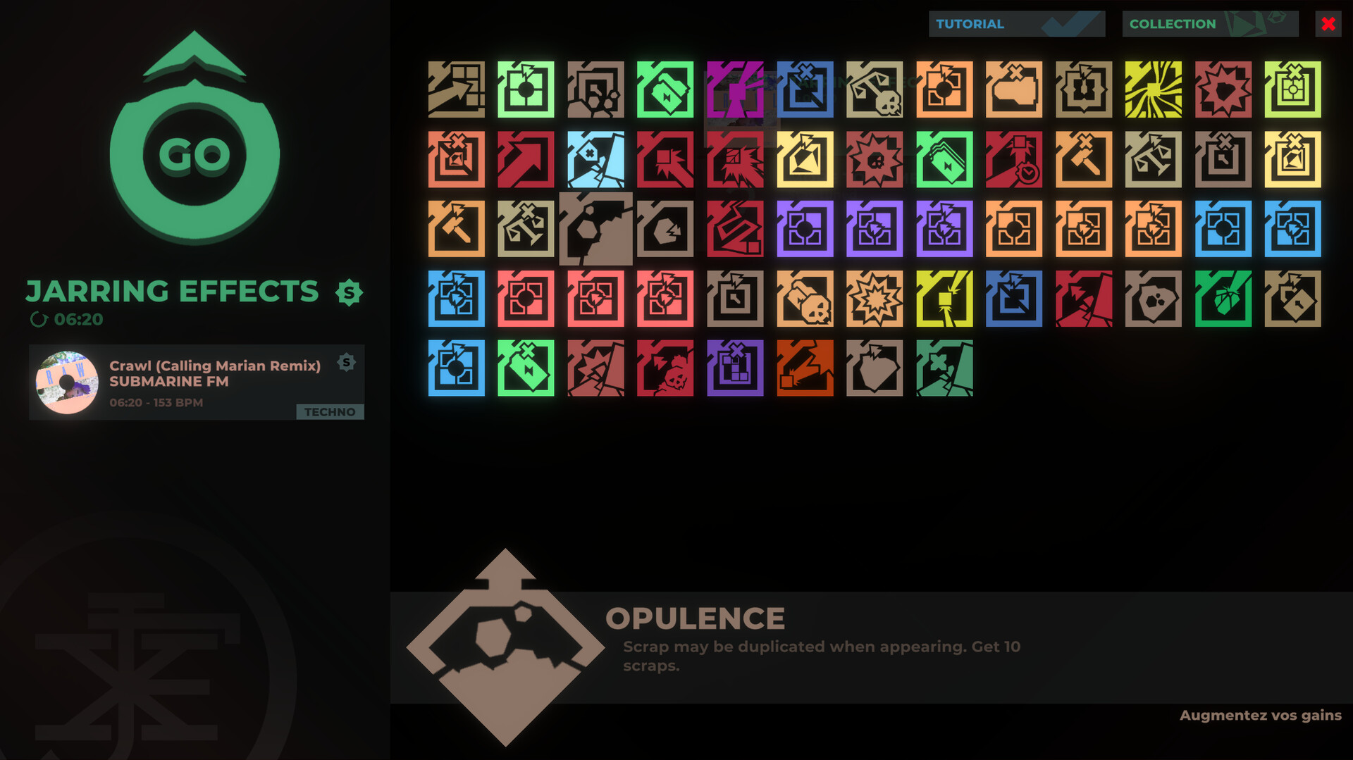 Explore the procedurally generated map. In it, you'll encounter fights, time trials or several recurrent rooms filled with all kinds of upgrades. The map generation can be customized in many ways to make sure it adapts to your needs and strategy. Better get moving though ! Time is ticking and the end of the song is coming.
