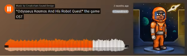 Odysseus Kosmos and his Robot Quest’s OST offers 20 tracks (mp3, 320 kbps) inspired by the Soviet space race era. Based heavily on the dialogues and personalities of the main characters, it dramatically evolves with the game’s plot itself. A brainchild of Princess & Ivan Holodov (Crematorium Sound Design project), it gives the pixelated universe of Odysseus Kosmos that specific nostalgic feel when space travel was the biggest news around the world.