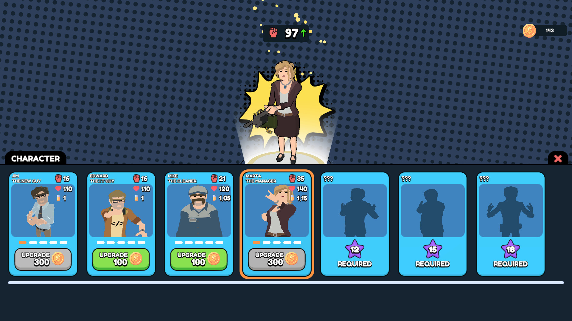 Each character starts with their own advantages: some are faster, others tougher, and some show up late—but already with coffee in hand.