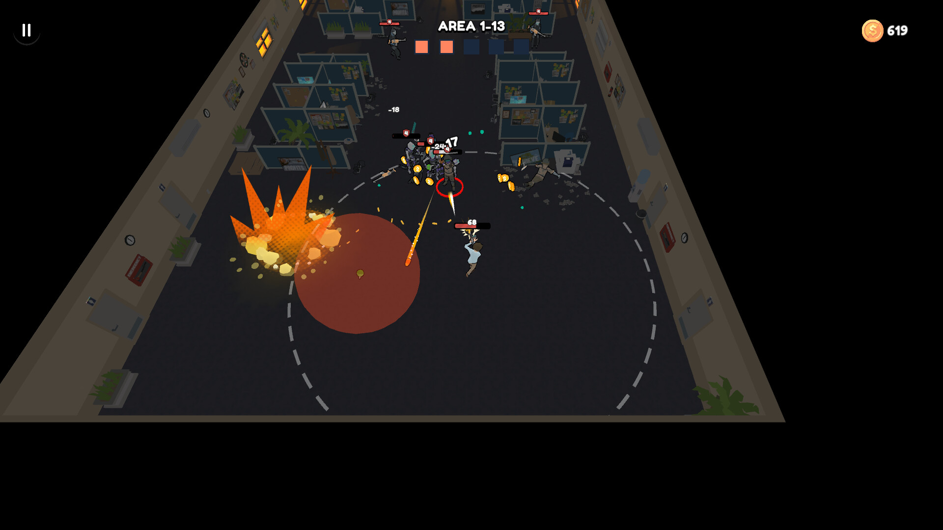 Office Hero is a top-down action, shooting, and roguelite game. Climb the floors of a building overrun by machines, choose your weapons, unlock new characters, and face challenging enemies and bosses in fast-paced, intense stages.