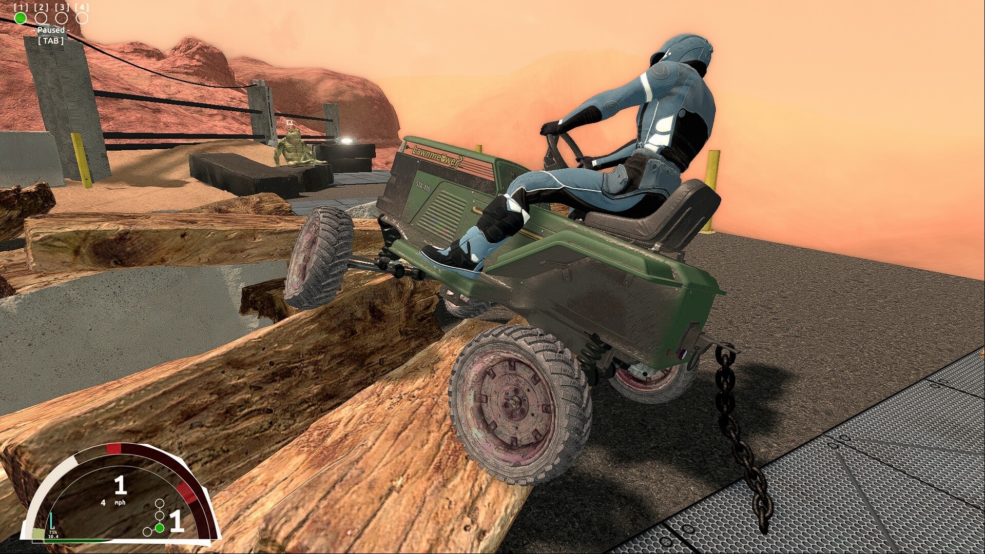 The vehicles all have unique suspension setups, allowing variation in axle tilt, spring, dampening, angle and resilience. The entire suspension is physically simulated, meaning when you hit a rock hard at a bad angle or grind your axles against something, you'll feel the mechanism react - or bend. You'll need to manage the harshness of your driving as the engine, transmission, chassis, steering and tires of the vehicles are all damageable. Not only do they have mechanical effects but they'll bend, break, hang off, deflate and spark. Explore different vehicles over time and learn their unique strengths and weaknesses as you conquer the large variation of challenges!