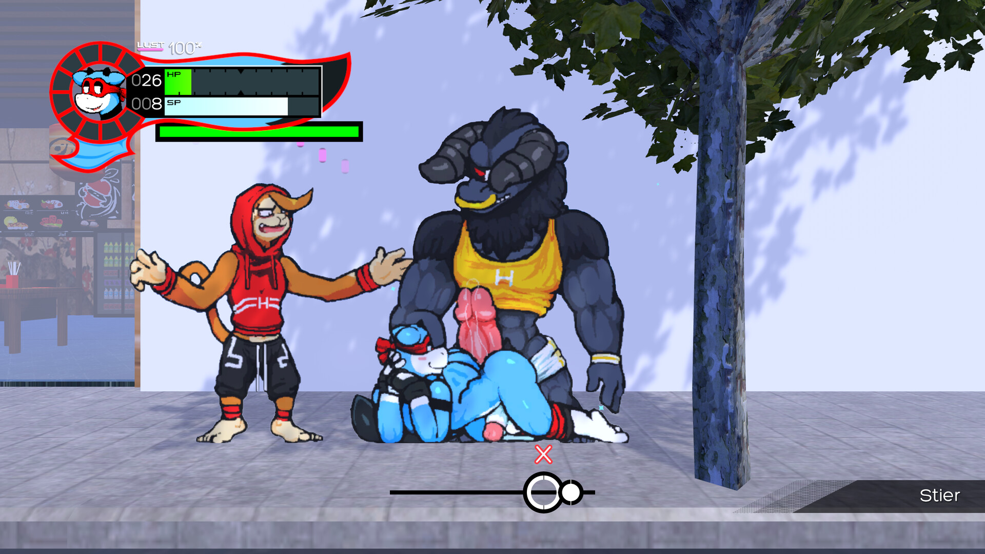 Oh So Hero! is a furry sextroidvania featuring explicit encounters with a male to male focus (plus some variety). Play as Joe, an average guy on Planet Aeter who enters a tournament where everyone can fight and fornicate. All willing participants use their strength and charms to outmaneuver their opponents and get one step closer to the Emeralds of Power!