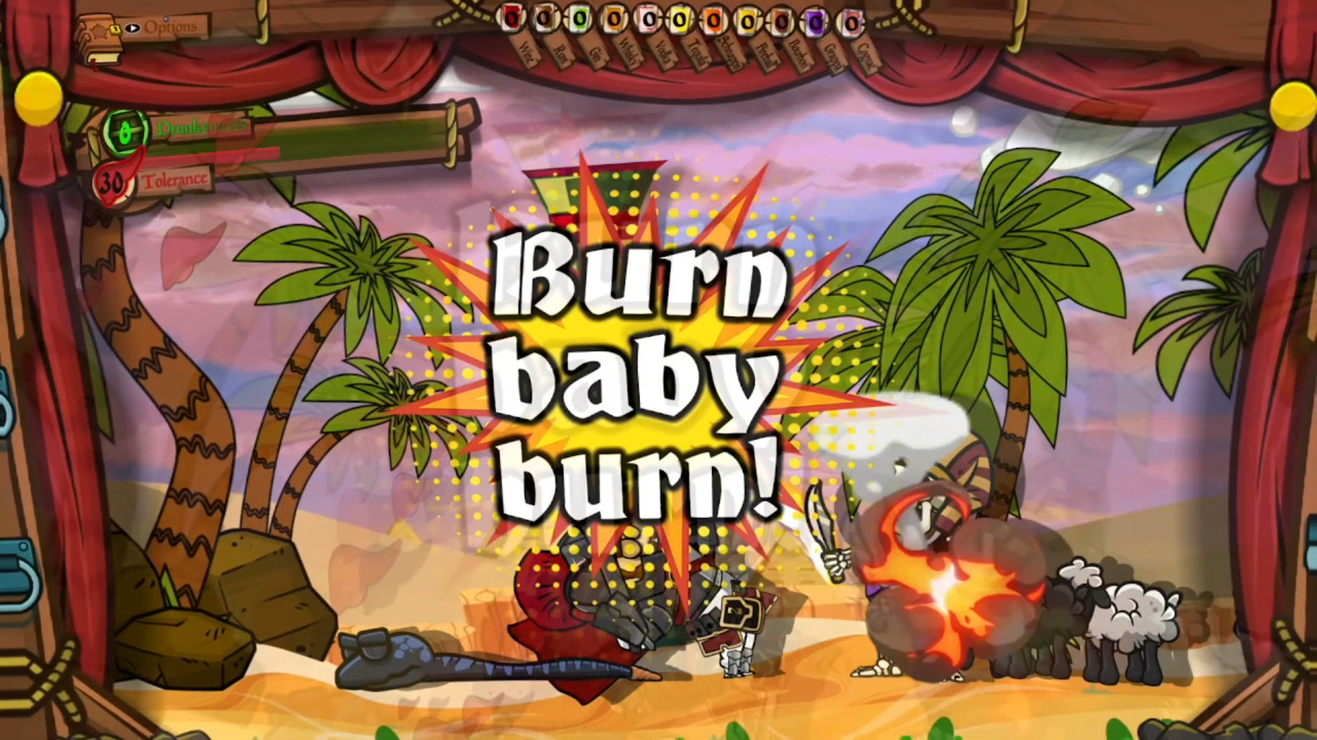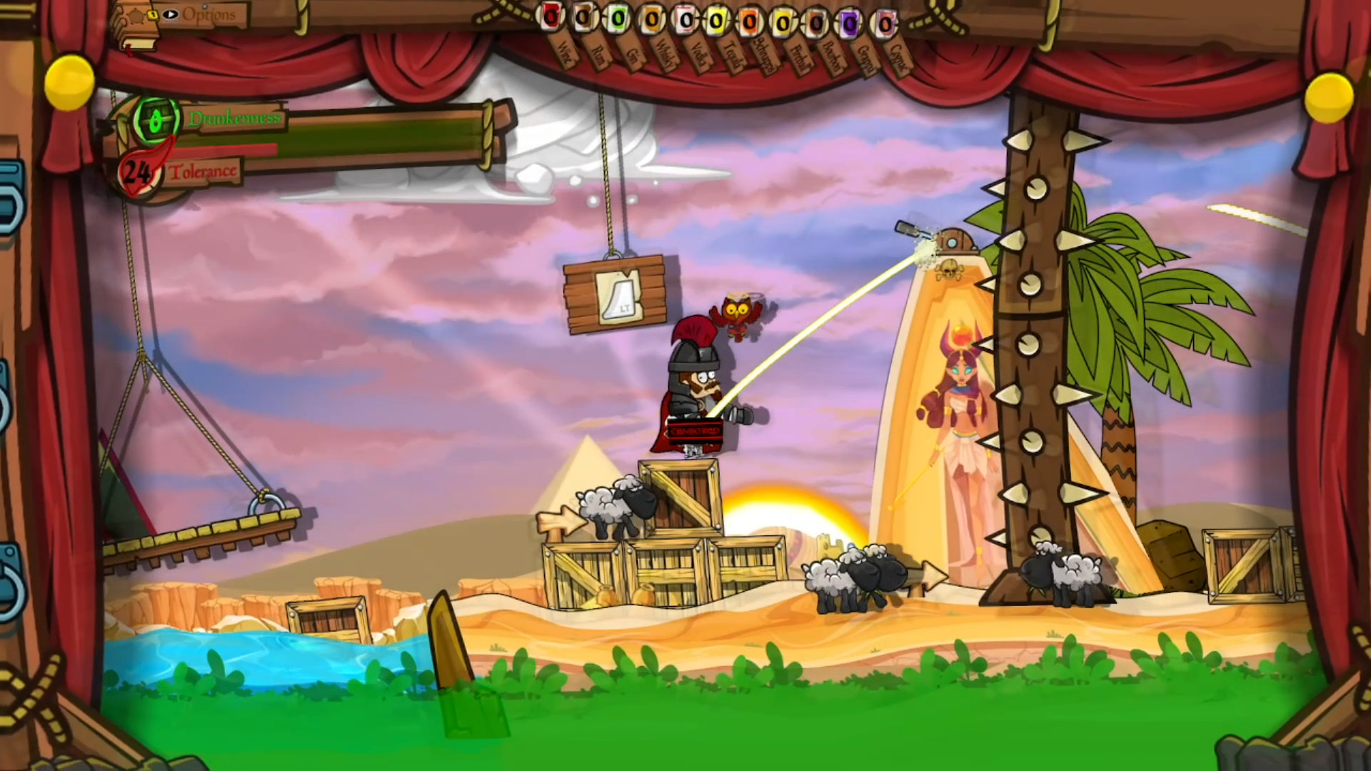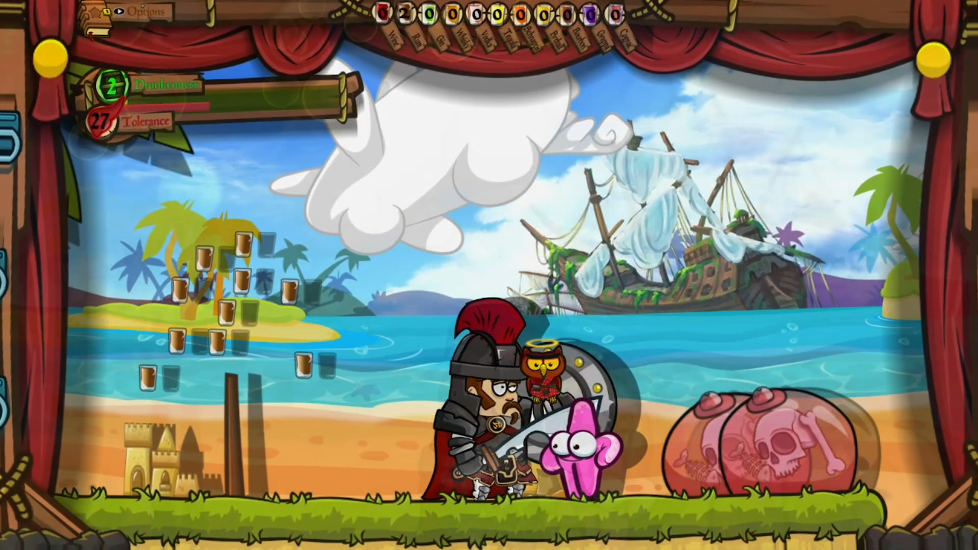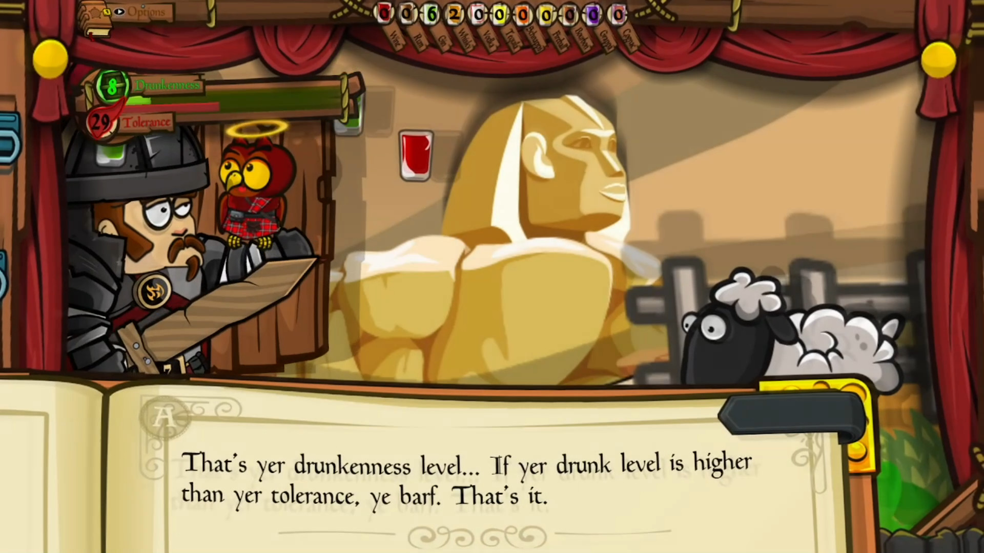 What dost hast happeneth last night?You are a knight, a curse knight... You wake up in the desert, hungover, unable to remember what happened to you (obliviously). You find the an old Scottish owl, the guardian of the Holy Grail, just lying there next to your smelly bulk! He's got a foul mouth on him and tells you that you need to drink to stay alive and get special powers. Great lesson for the wee kids, I know...
