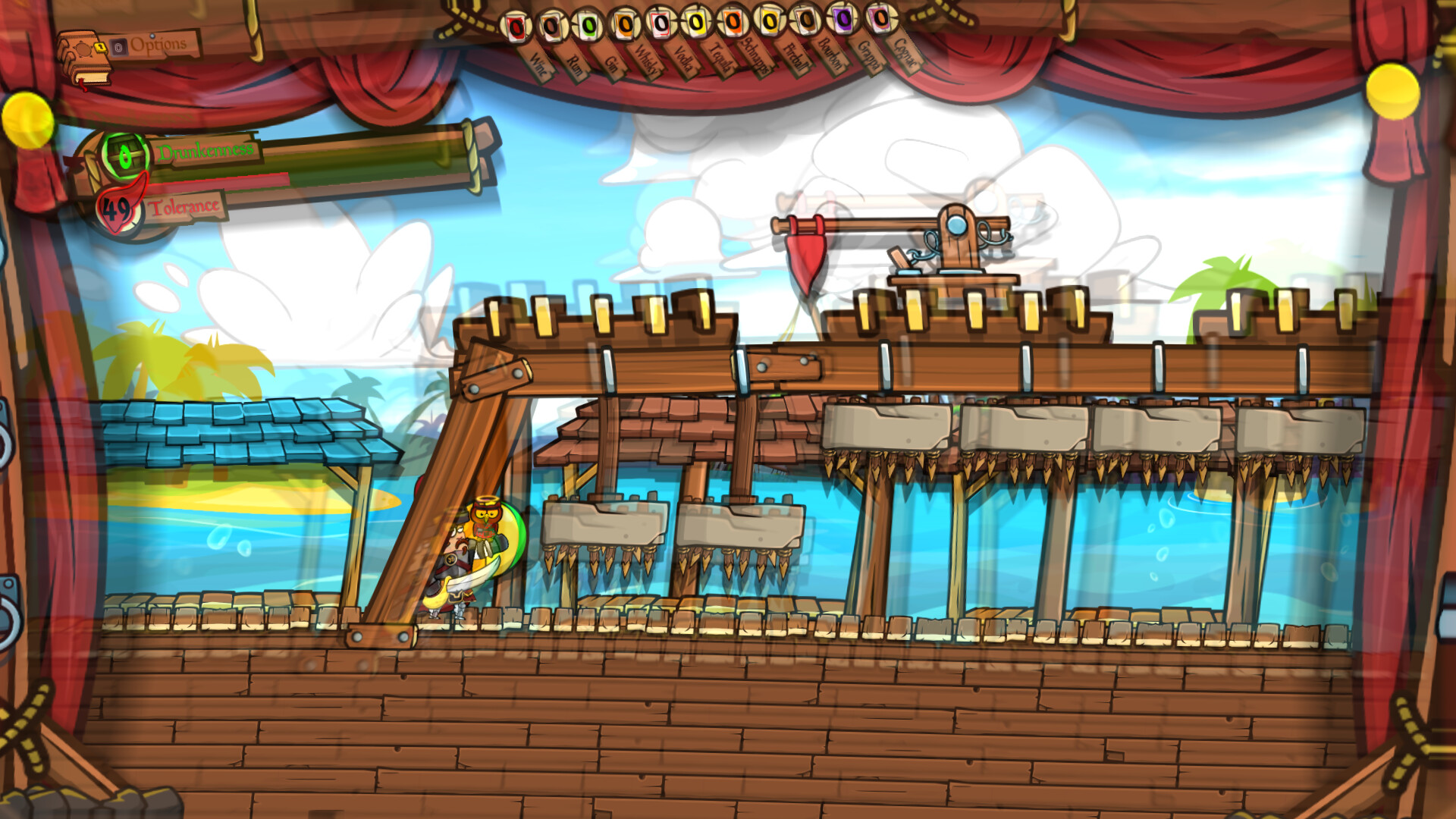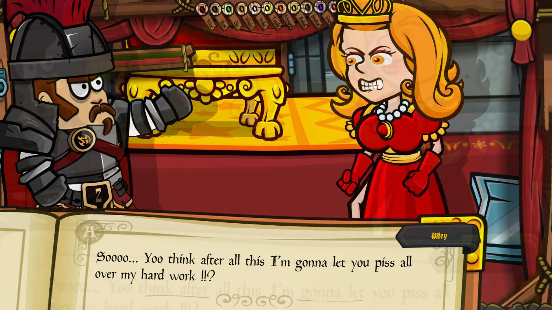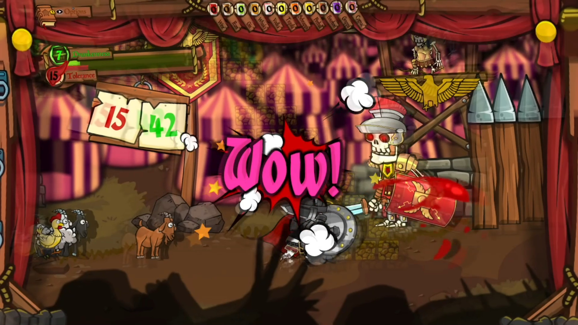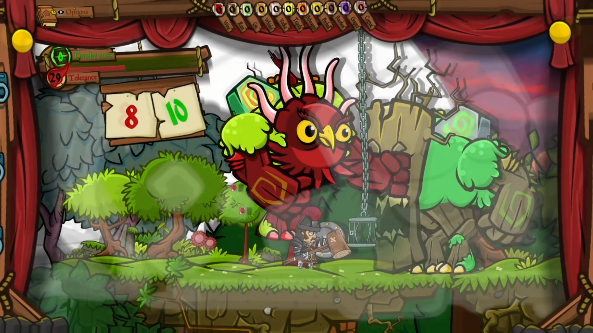 What dost hast happeneth last night?You are a knight, a curse knight... You wake up in the desert, hungover, unable to remember what happened to you (obliviously). You find the an old Scottish owl, the guardian of the Holy Grail, just lying there next to your smelly bulk! He's got a foul mouth on him and tells you that you need to drink to stay alive and get special powers. Great lesson for the wee kids, I know...