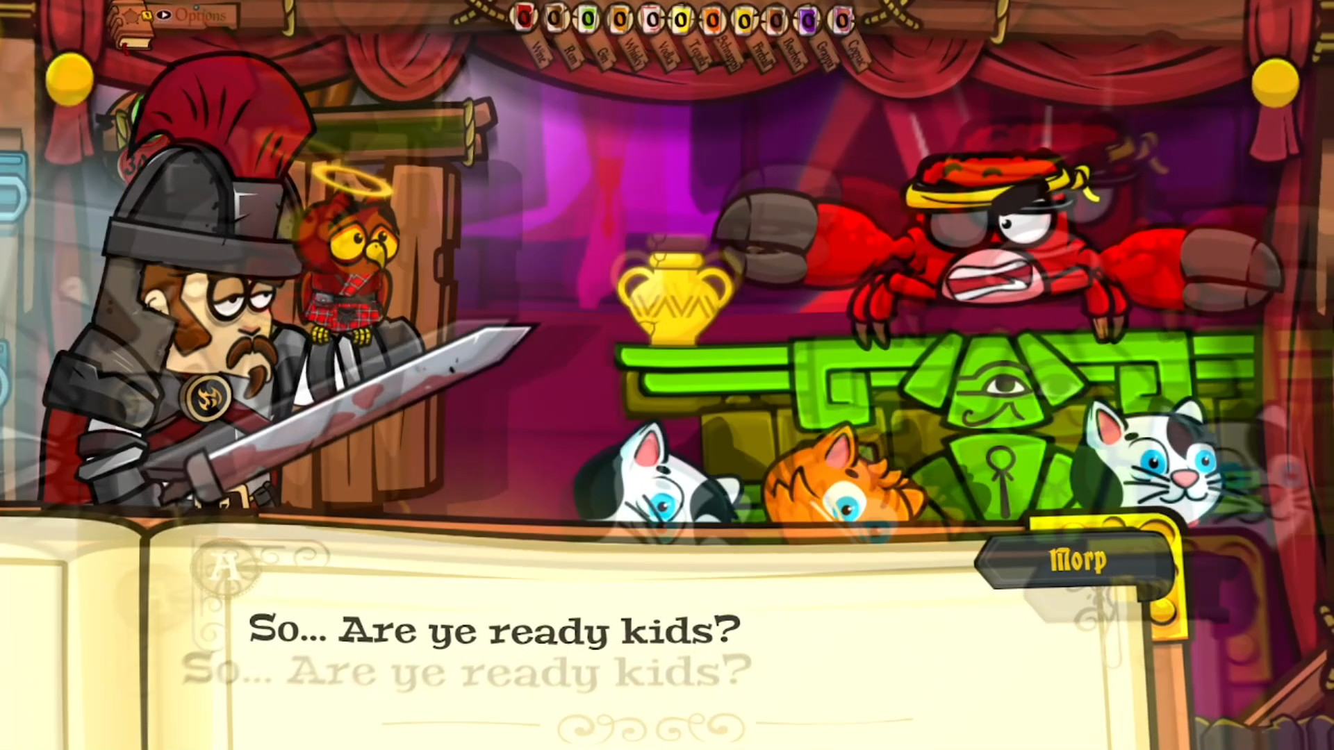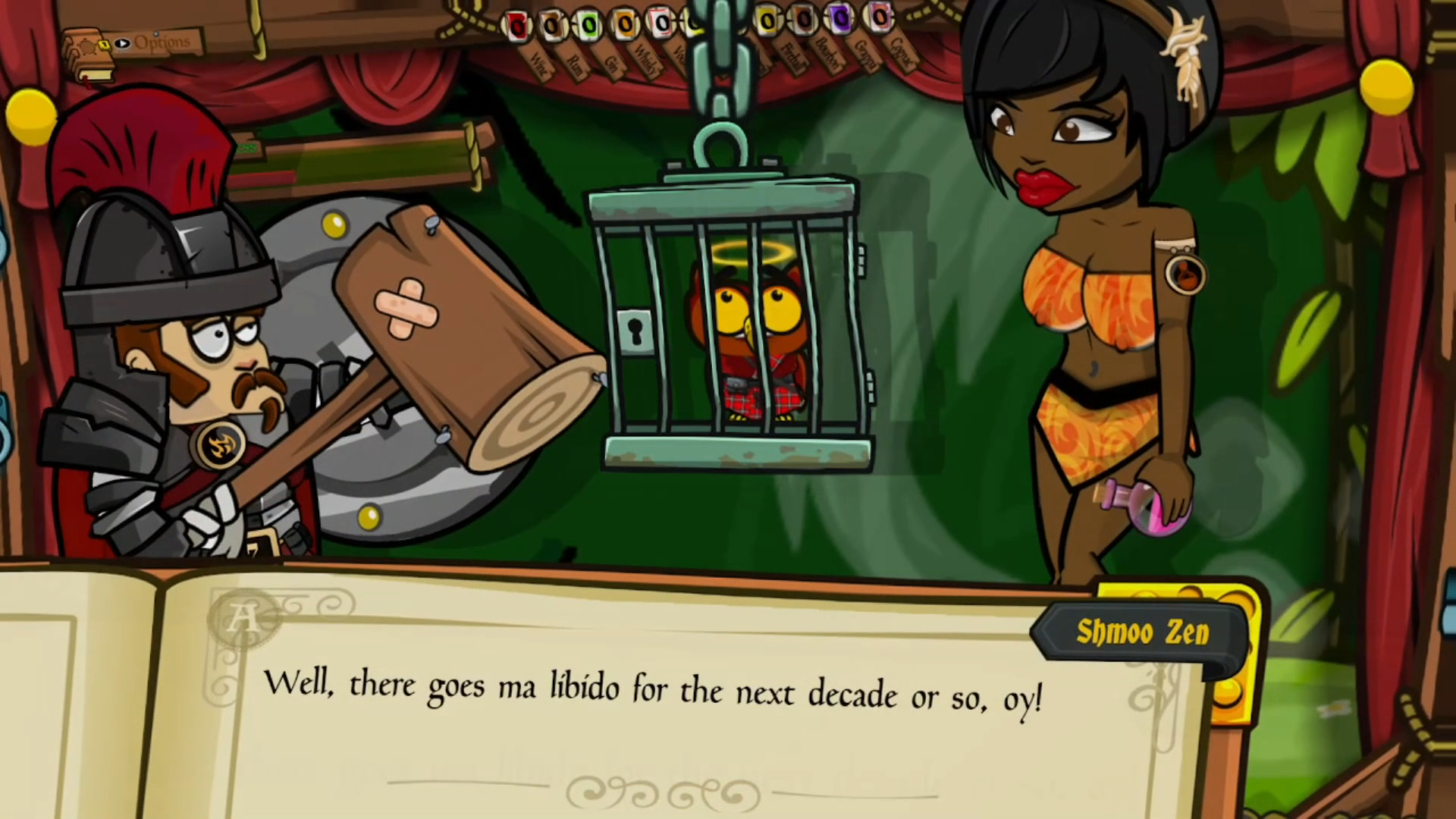 It's a story of a medieval bachelor party gone very wrong... You'll need to escape the desert and find your way out of the Great Pyramid, make friends with different people and creatures to help you along the way, walk through a sexy-parrot-infested jungle, hire a skeleton pirate to get you across the sea (guess how that turns out), visit the underwater world of the sirens (of course), save a bunch of kids from fanatical priests, and so on. Fun for a very limited part of the whole family...