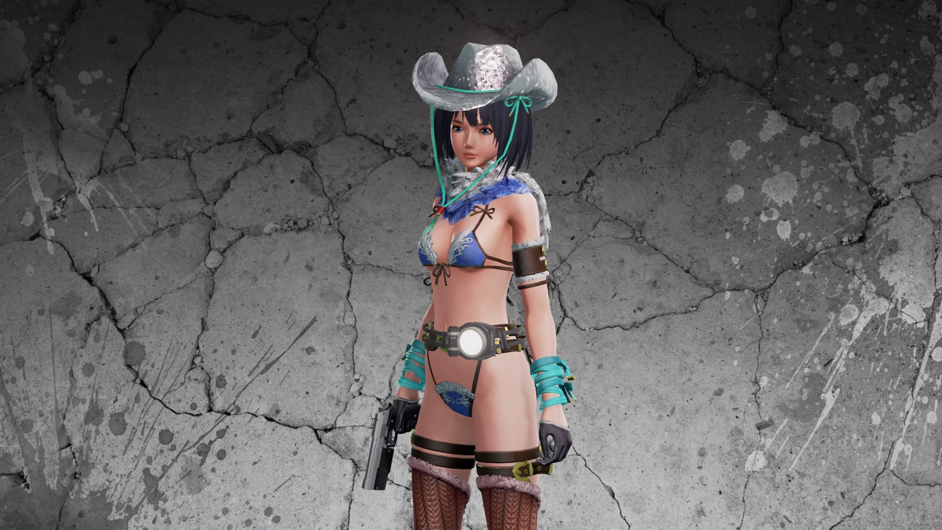 Includes the outfit items 'Onechanbara Blue Kagura.'