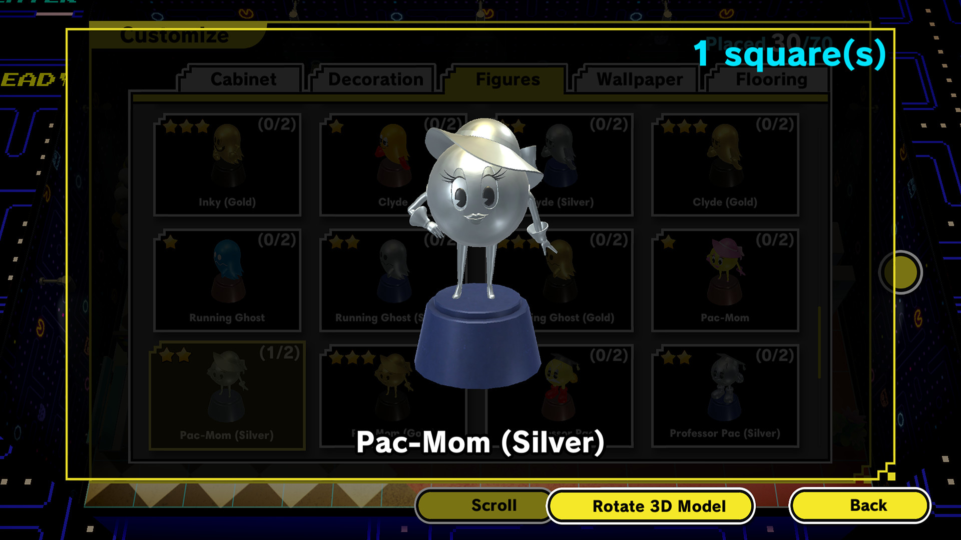 A set of 5 figures to show off in your virtual arcade. Figures Included: PAC-MAN D (Silver), PAC-MAN D (Gold), PAC-MAN E (Silver), IZIKE (Silver), PAC-MOM (Silver)