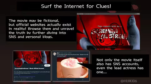 All of the Twitter accounts and Websites in the game exist in reality. Use your Internet browser to gather information and uncover hidden secrets, and get to the bottom of the urban legend surrounding the popular calling and live streaming App "Palphone"!