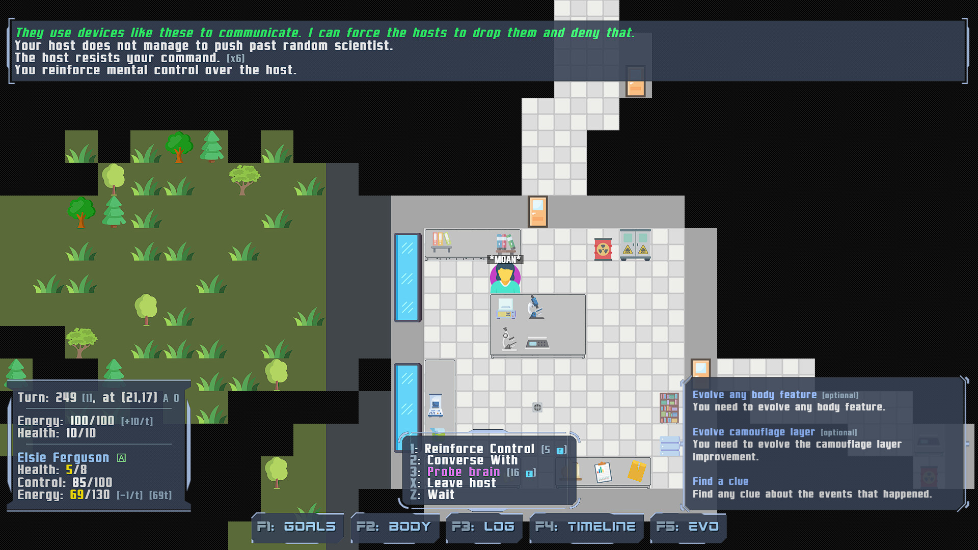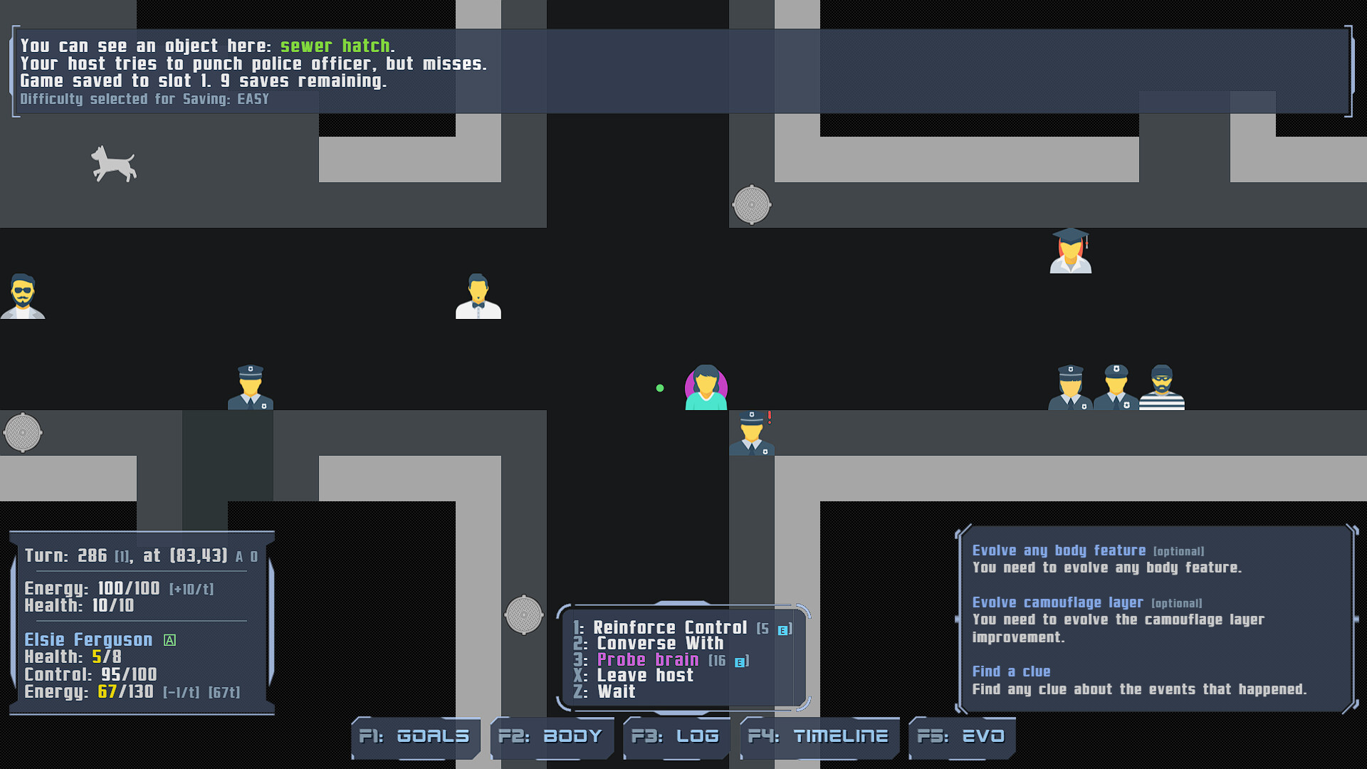 Parasite is a roguelike survival horror game about possession set in a modern-day setting. Currently in development, each session is set to be medium length (around 2-3 hours to complete). The game is fully completable to the end but needs GUI work, balancing and polish.
