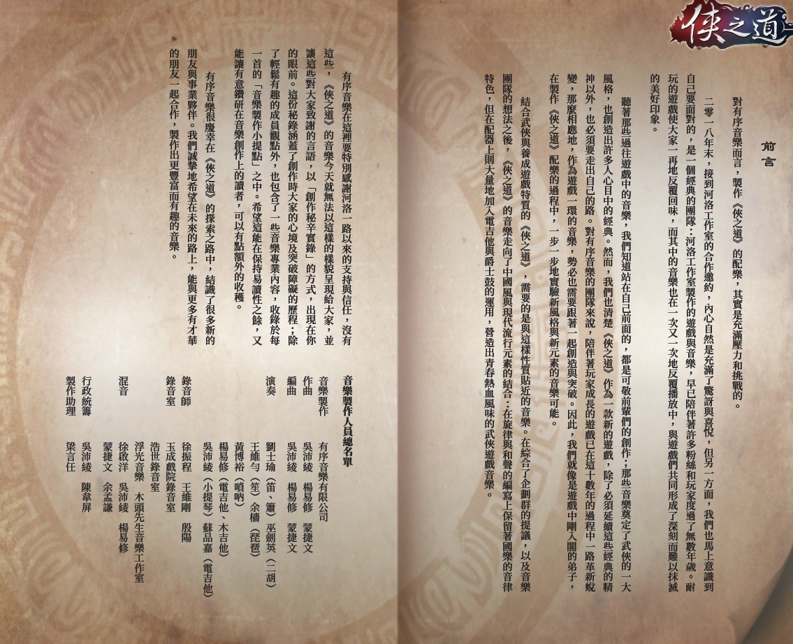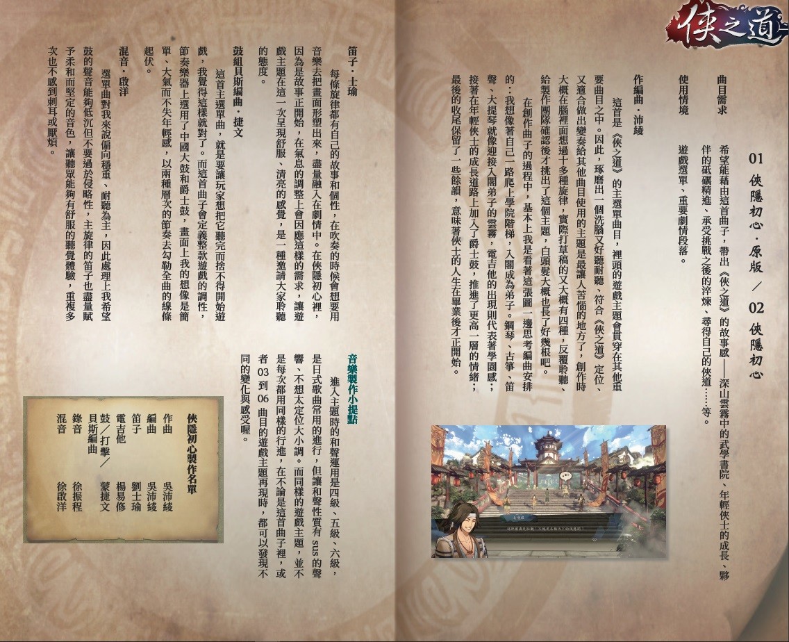 This OST currently contains 41 tracks of game music, including bonus tracks that can only be found in this album. Each track is provided with two formats: mp3 and lossless wav. The OST also includes a PDF Ebook written in Chinese, introducing the tracks and the scoring team.