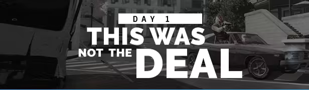 Day 1 - This Was Not the Deal – When the PAYDAY gang were ordered by Vlad to intercept a truck carrying cocaine, they expected to act as clean-up and collect the goods. Easy peasy. Or at leas that's what they thought. But as they arrive on the scene and see the crashed truck, there is no cocaine packages in sight... only goats... and chaos...