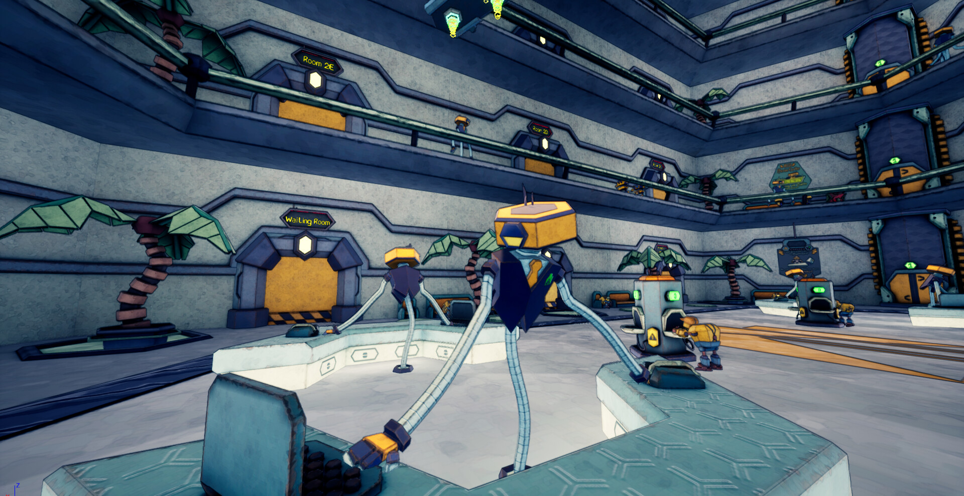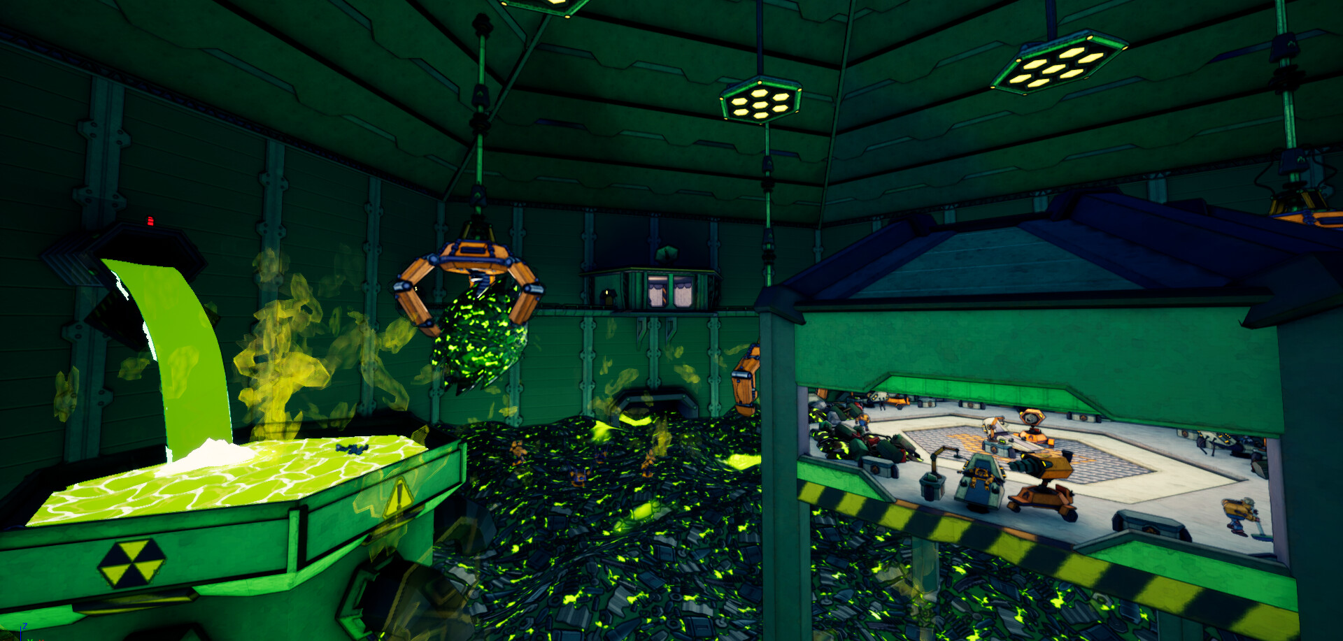 The most vicious oppression is reserved for those living in the bottom sector of the tower, working on hazardous industrial facilities. At the lowest floor of the tower, an enslaved construction bot waits for the opportunity to enact his vengeance on his creators.