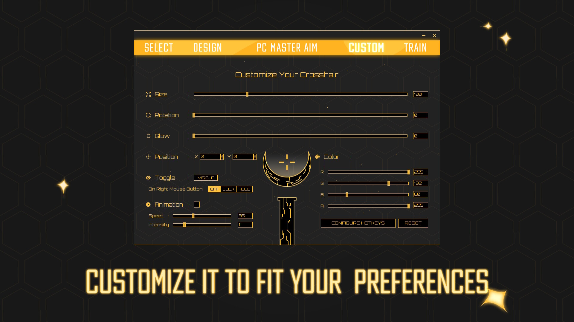 PC Master Aim allows you to customize your crosshairs, offering a diverse range of pre-designed options and the ability to create new ones, tailoring each to perfectly match your preferences. Additionally, it offers an Aim Trainer to further enhance your aiming skills.