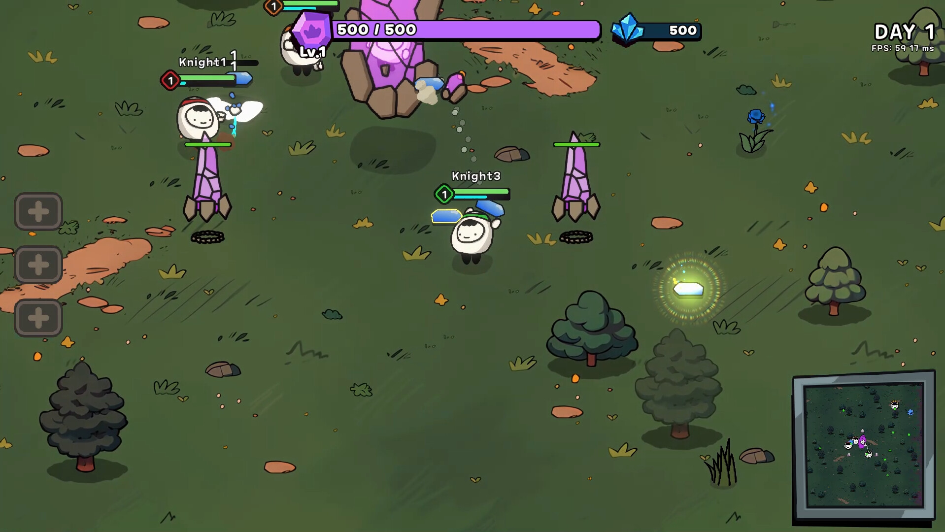 Oh no! The Evil Hell Fungus army attacks the Pebble Kingdom every night! Tiny but mighty, the Pebbles must defend it! Gather shiny things by day, power up, and gain traits to become even stronger Pebbles for battle! When night falls, team up to fight off the evil Fungus and protect your kingdom!