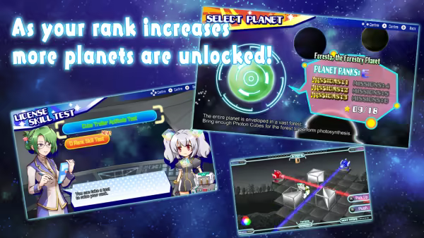 By clearing at least 3 missions on a planet, you can take a License Skill Test to proceed to the next planet.