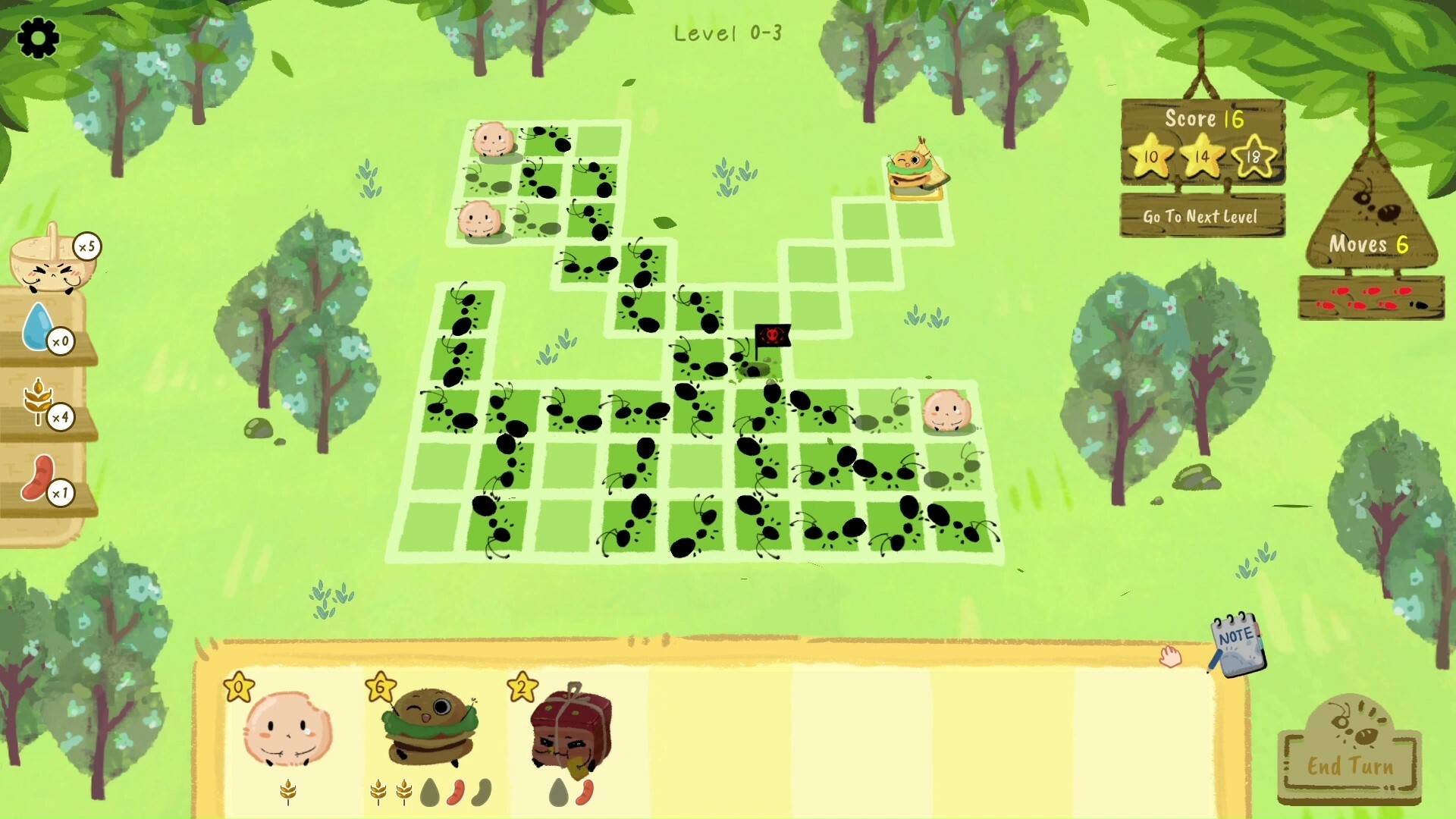 Unlock ten cute and unique food characters, each with their special abilities. From Tako who squirts ink to Heath who dazes ants, you will enjoy getting to know their adorable appearances and interesting personalities. Try your best to unlock them all! By combining different character abilities, each level contains endless opportunities for strategic play!