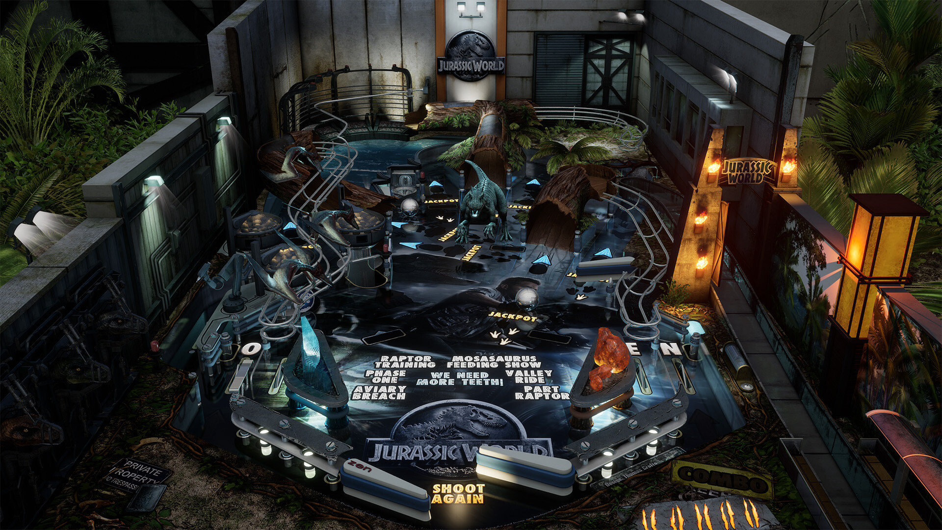 - Jurassic World™ Pinball enables you to train Raptors, view the spectacular Mosasaurus feeding, and escape the deadly Indominus Rex. You'll even experience Gyrosphere Valley using a playable gyrosphere pinball.