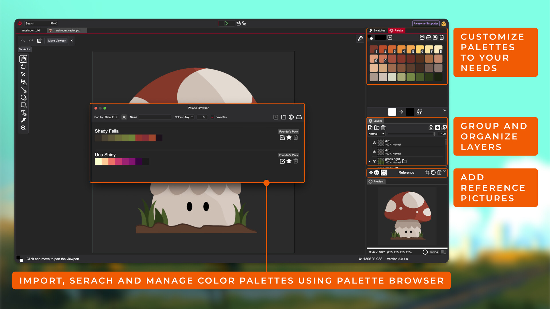 PixiEditor is a universal 2D editor with tools and features for all your 2D needs. It blurs the line between vector and raster graphics. Create animations, procedural graphics, draw pixel-art, edit photos, vectors and more!