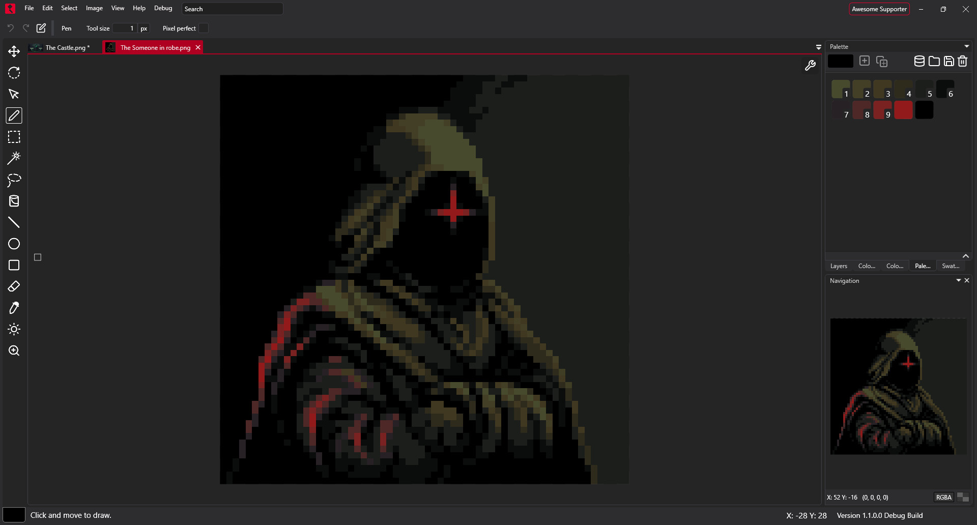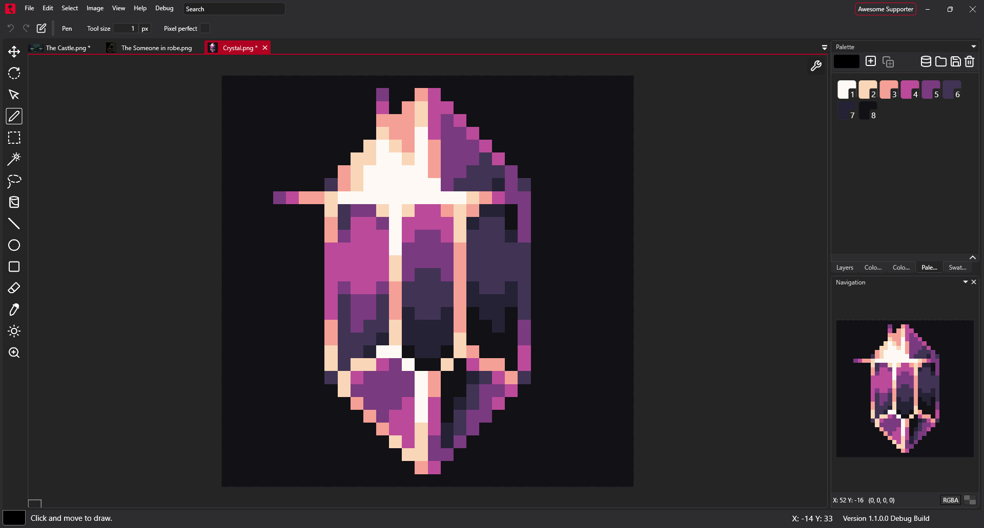 Jump ahead of the curve with 21 pro color palettes 4 workspaces and a unique badge for supporting PixiEditor development