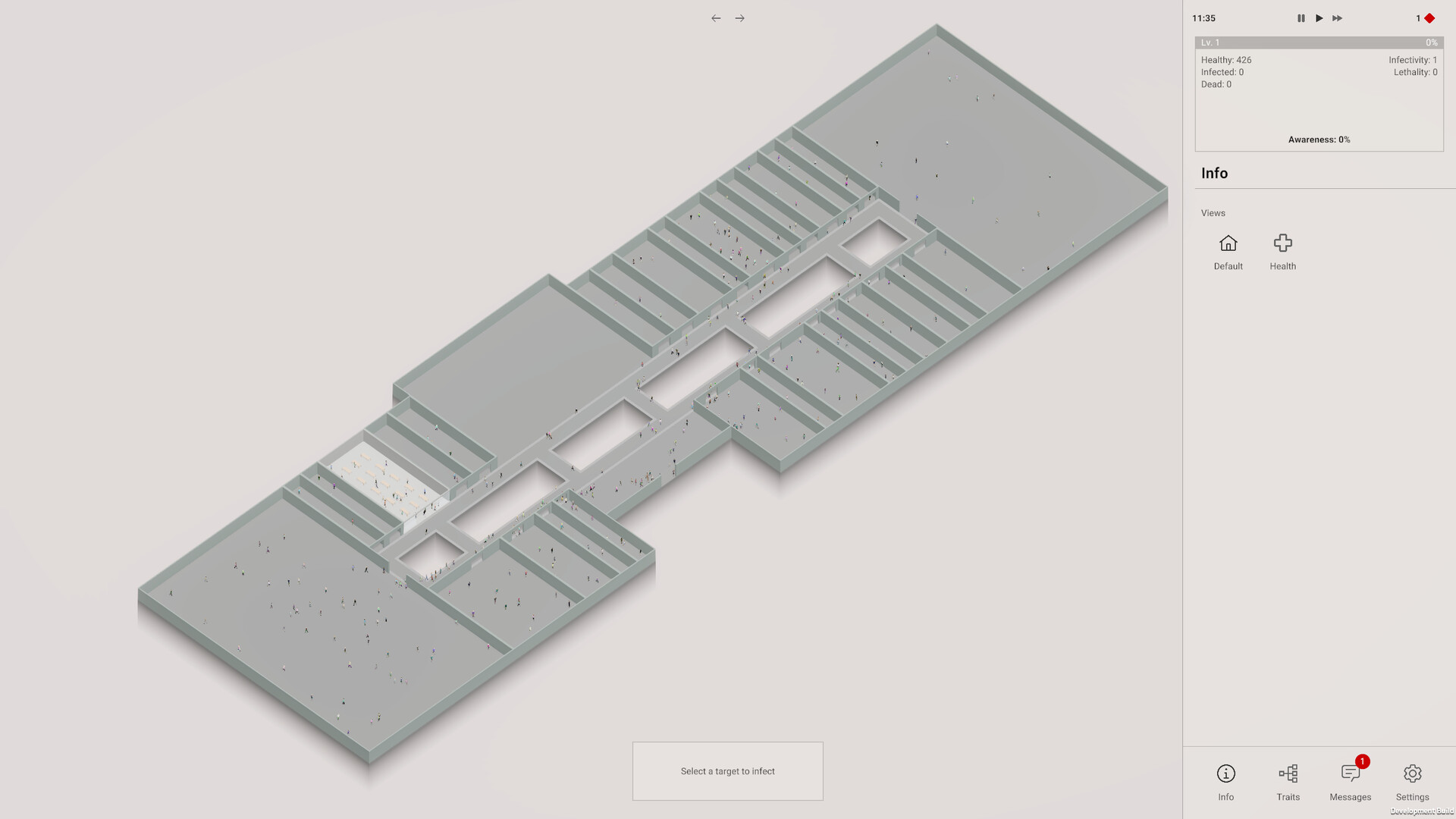 Plague Architect is a strategic outbreak simulator set in a mall. Inspired by classics like Plague Inc., but on the microscale.