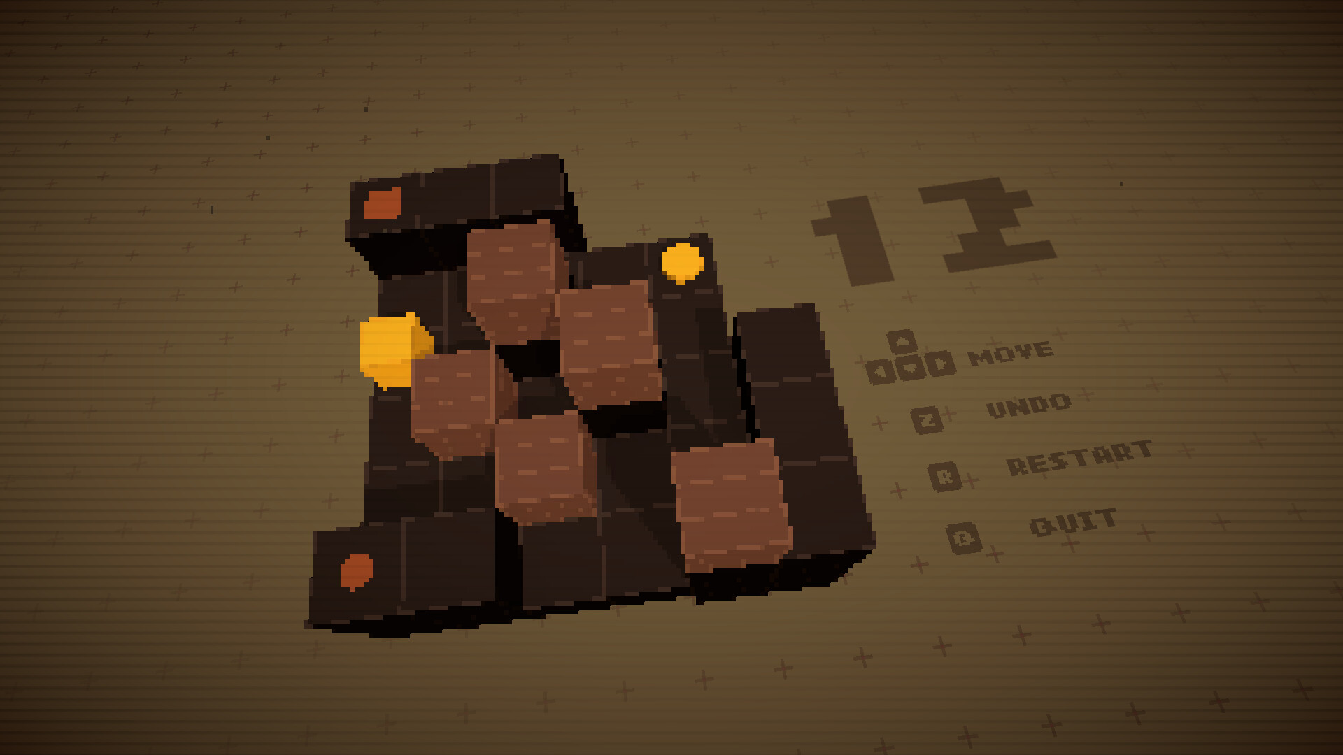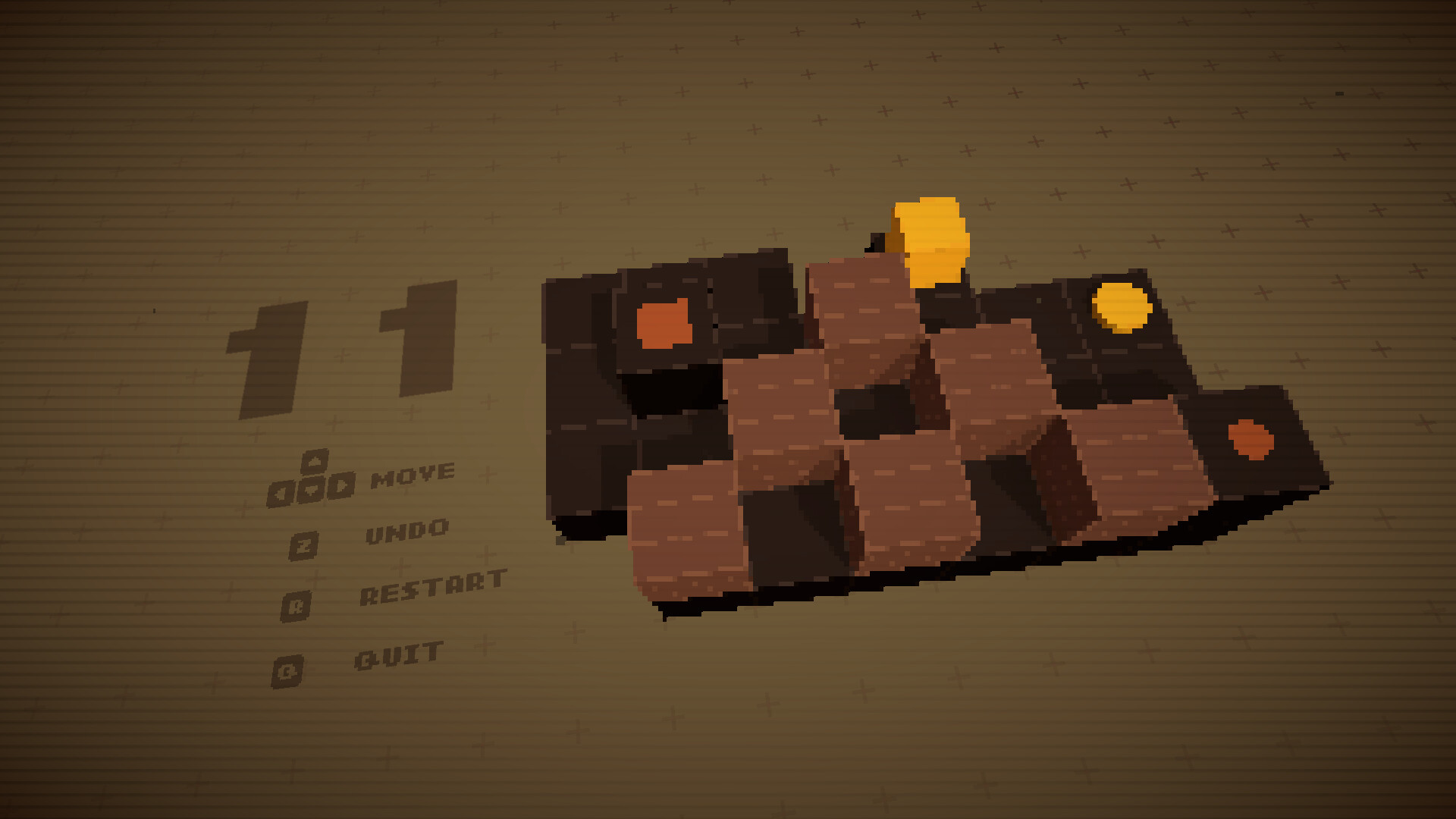 First, enjoy the challenge of moving the yellow blocks to press the yellow buttons. Brown boxes can be pushed to clear your path and solve the puzzle. Clear the level, and you’re done... or are you?