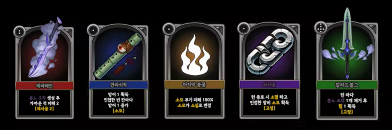 The core enjoyment and objective of the game come from combining these five types of cards to create maximum synergy. As you win battles, you can acquire inventory fragments to expand your inventory and obtain additional cards.
