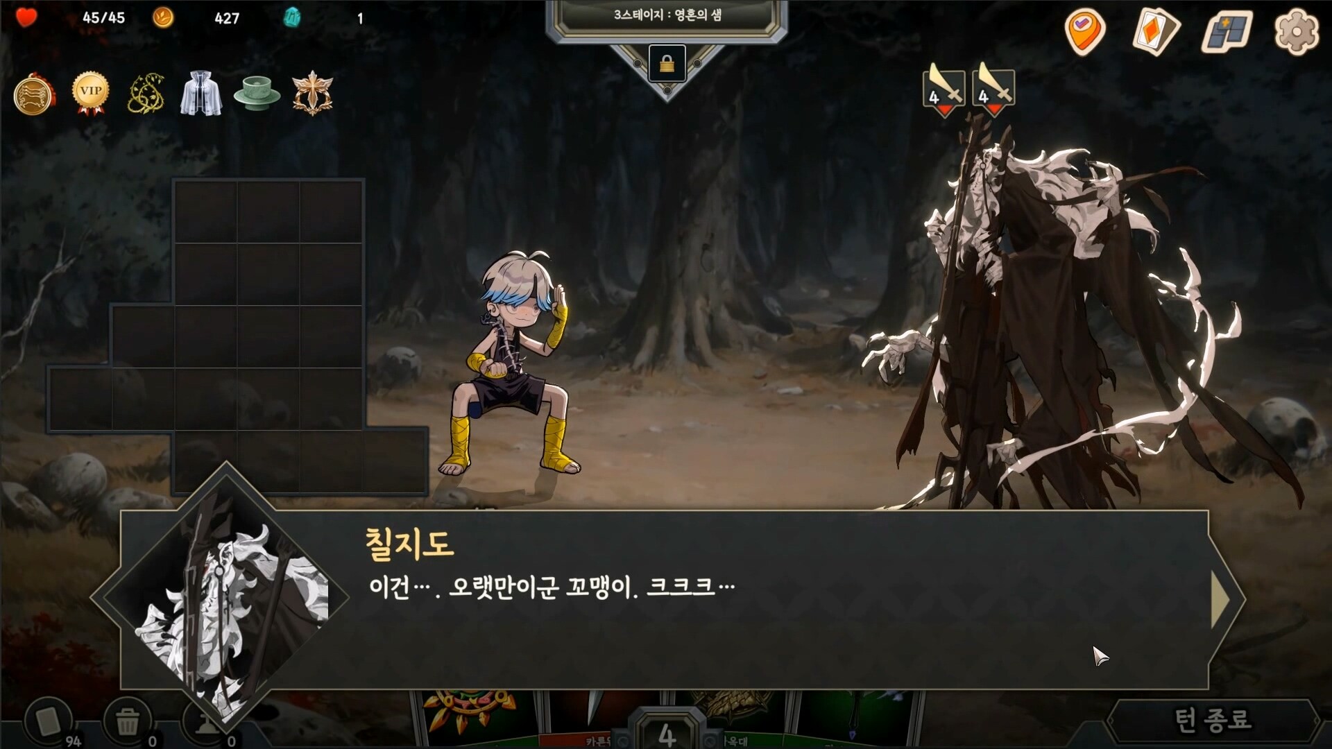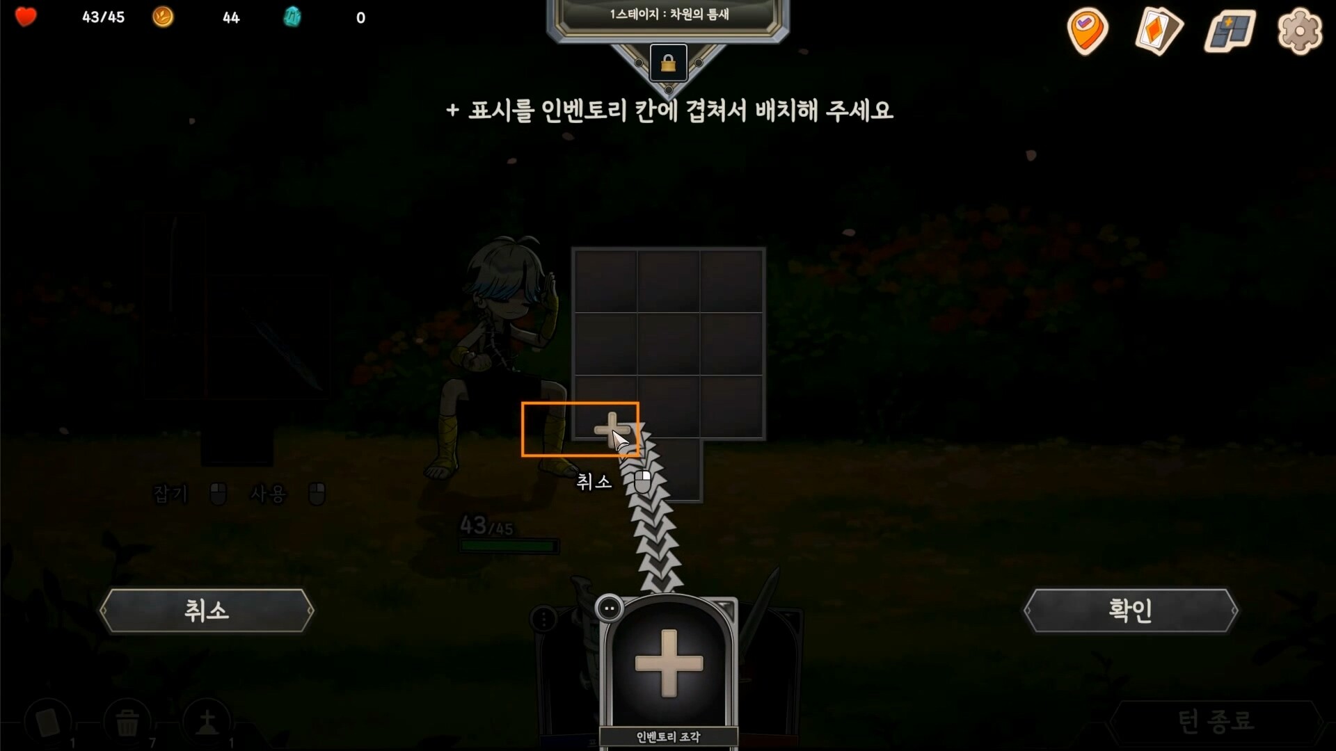 As an "inventory" roguelike deck-building game, each card's ability is influenced by its position in the inventory, the surrounding situation, and relics.