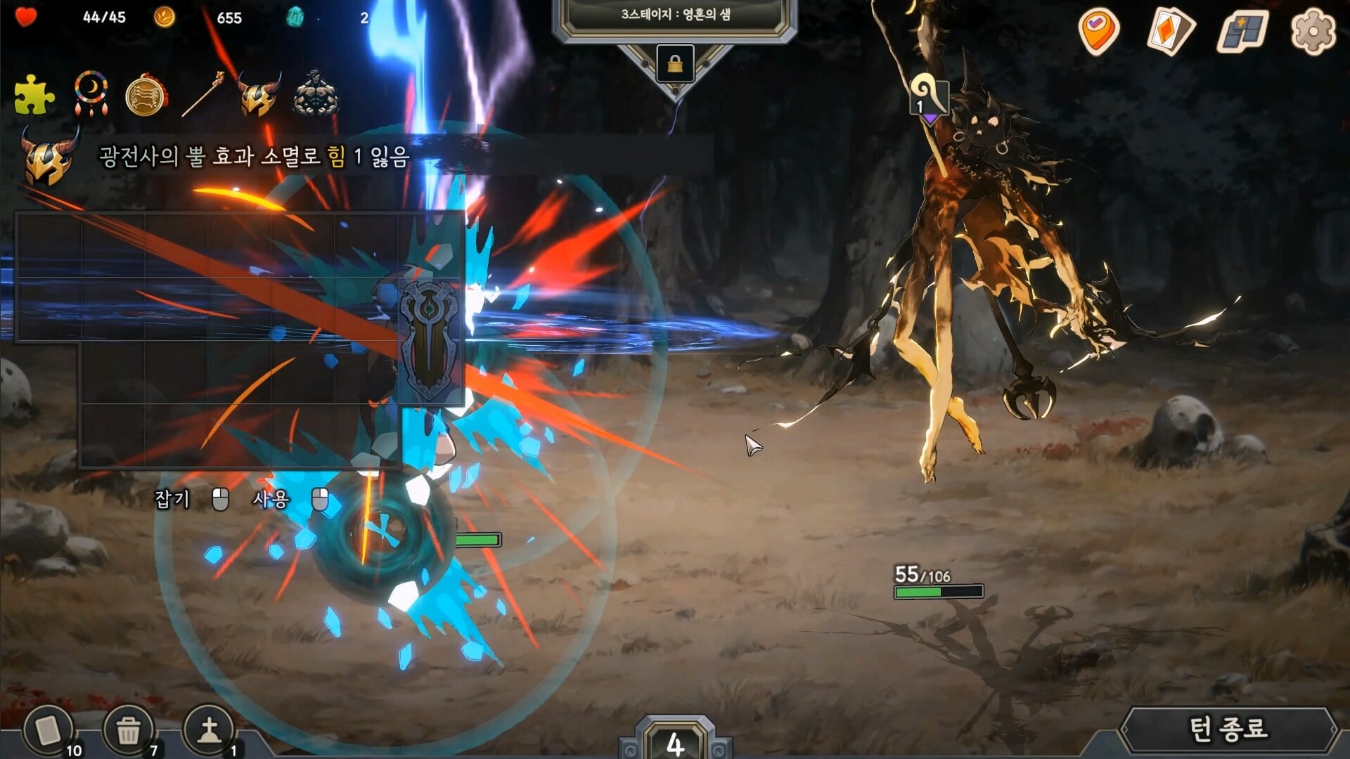 Since you draw cards every turn, the gameplay offers a different kind of fun compared to games where you simply set up your inventory and watch the outcome. You must continuously reorganize your inventory each turn to find the optimal setup.