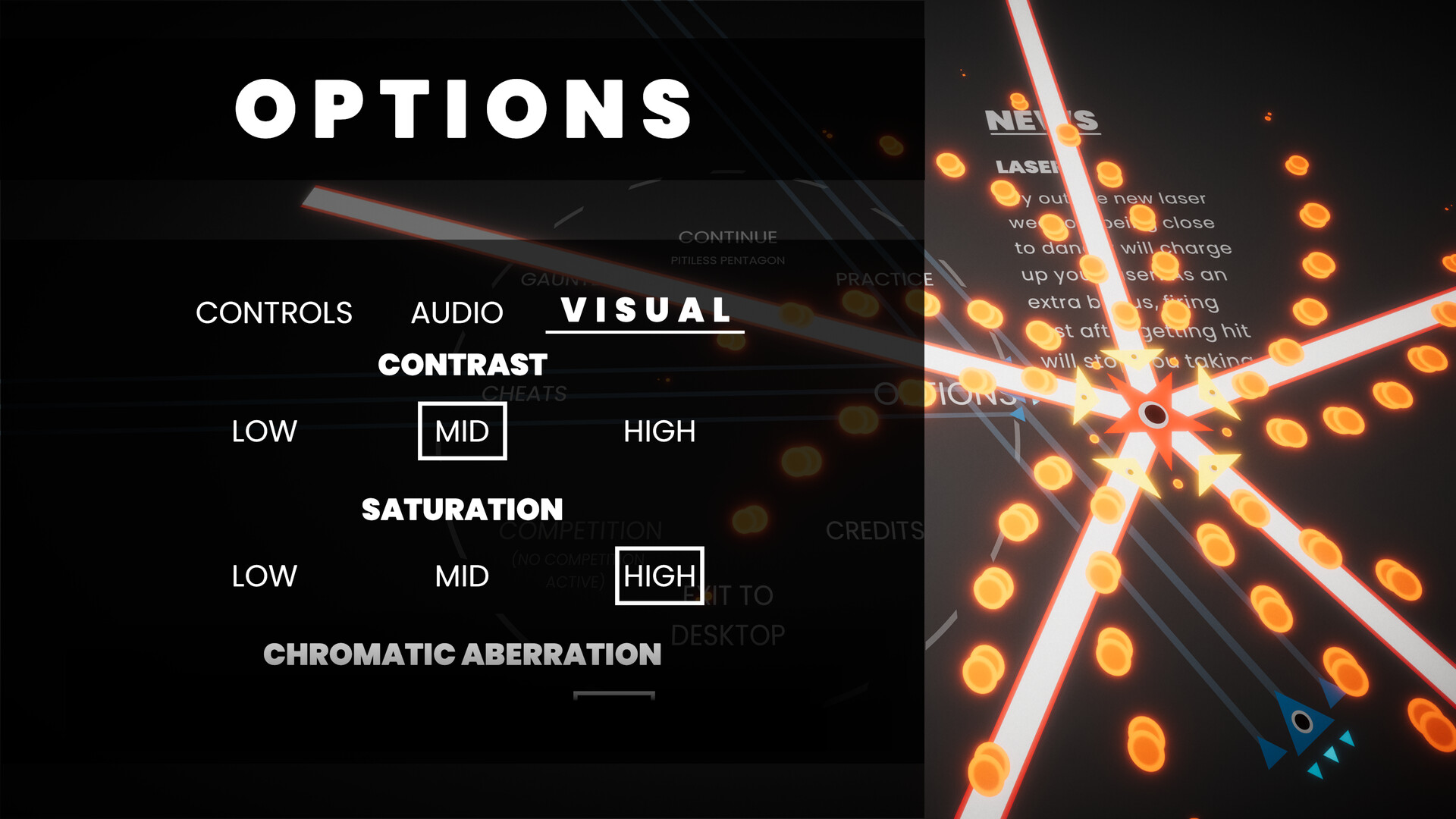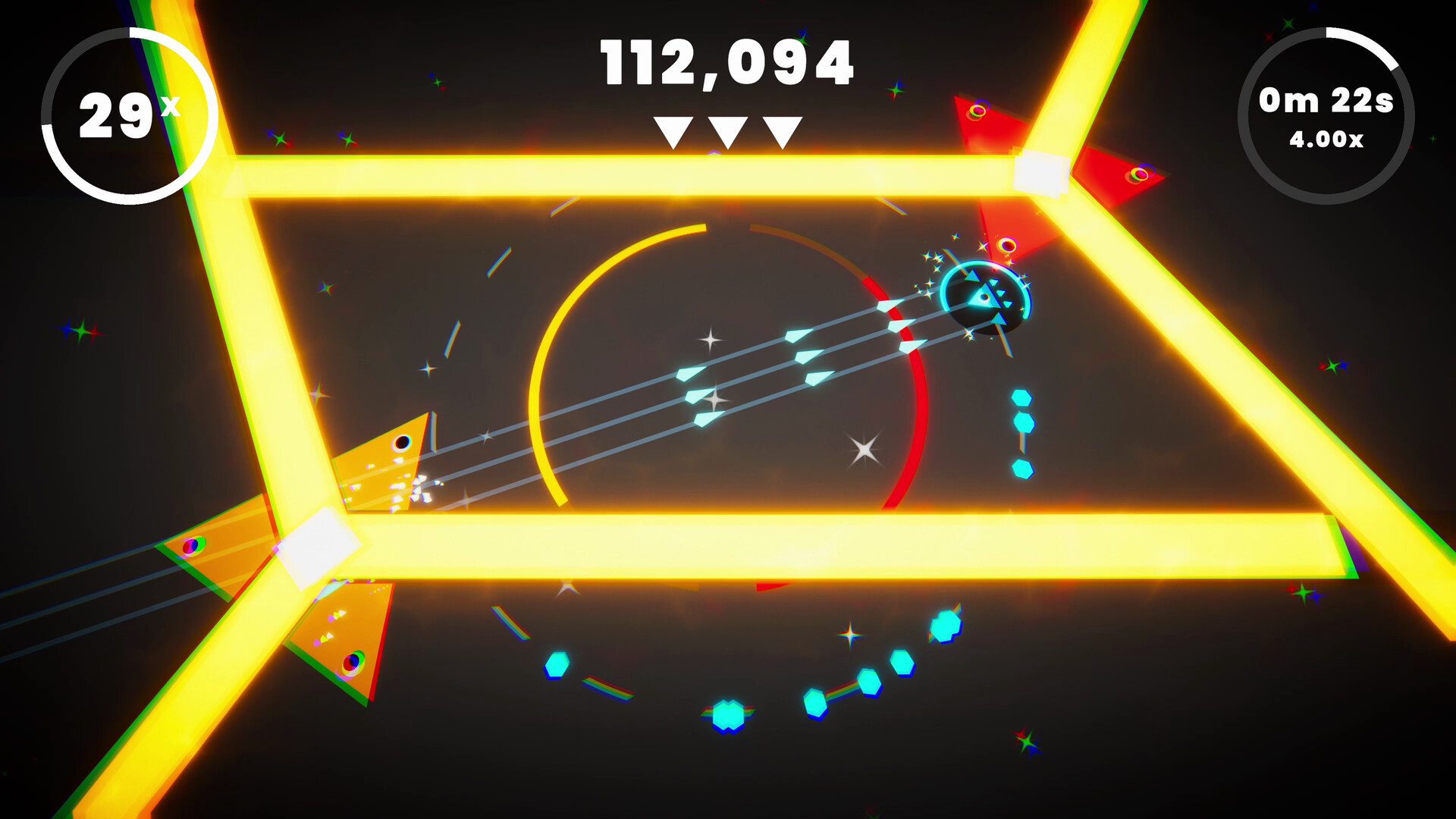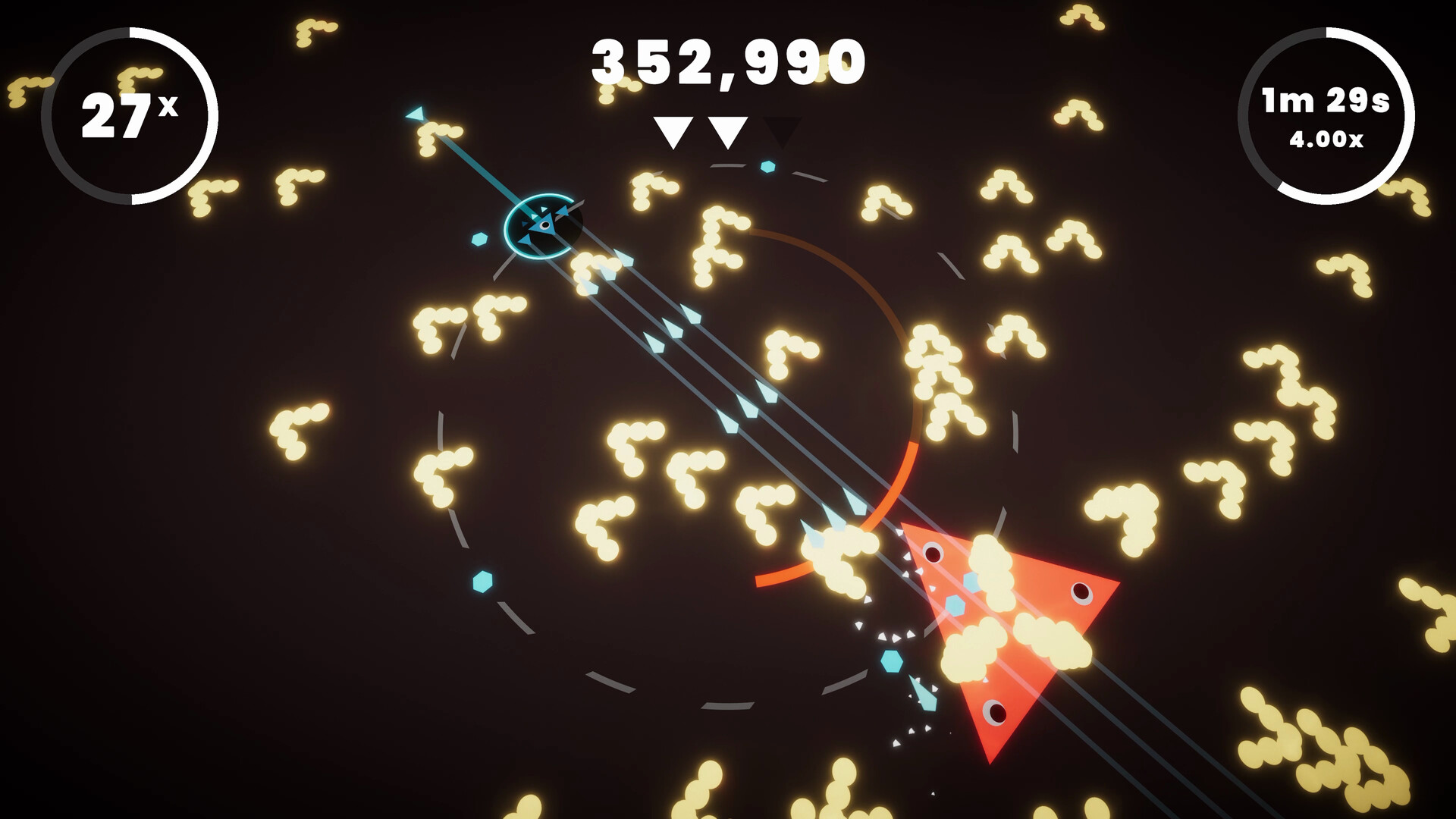 Inspired by the likes of Tempest, Geometry Wars and Just Shapes & Beats, this modern shmup aims to strip back the complex, busy art style of classic shoot-em-ups. The minimalistic art style makes enemy bullet patterns much clearer and easier to focus on, if not easier to actually dodge 😉