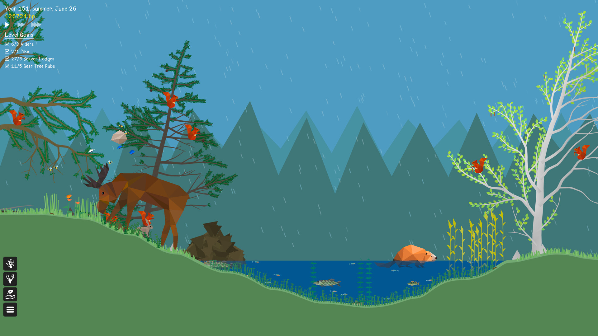 Clicking on animals trigger different behaviors that influence the forest ecosystem: Moose poop, fertilizing the soil. Voles eat tree roots, damaging the tree. Foxes hunt other animals.