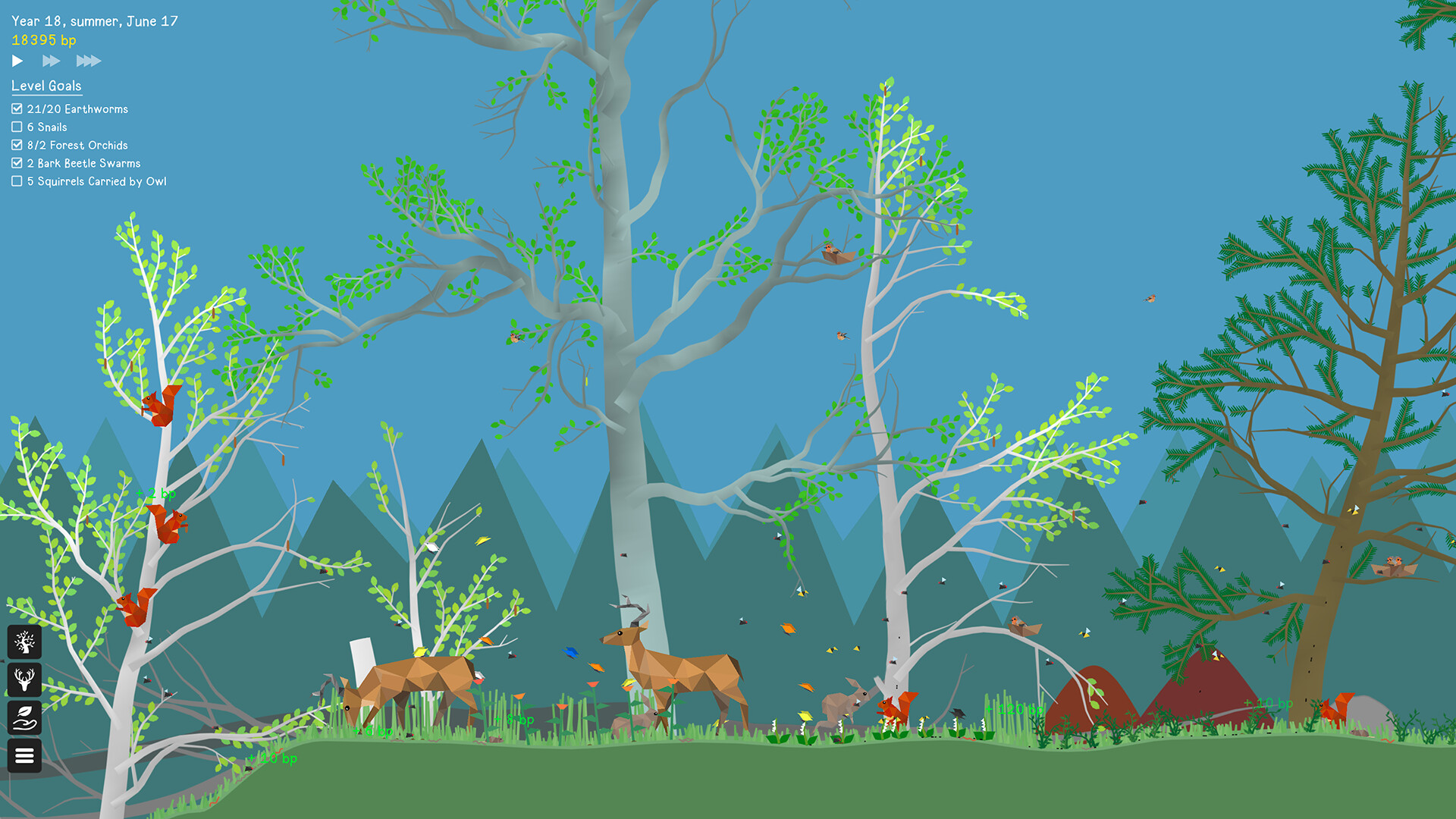 A forest simulator where you grow trees and create habitats for animals, plants and insects. Click on animals to make them poop, hunt, dig, cut and twerk! Start with a few basic seeds and attempt to grow a thriving ecosystem.