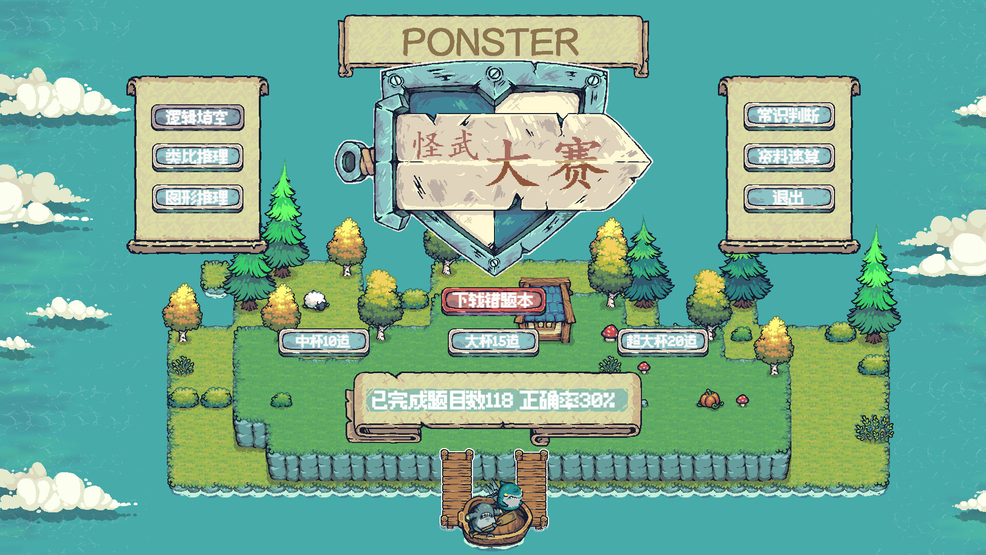 游戏旨在提供一个轻松愉快的刷题环境,给喜爱游戏但有考公需求的同学一个两全其美的选择,在玩乐中进步,目前有逻辑填空,类比推理,图形推理,常识判断,资料速算五大基础板块题库,以及46级英语高频词汇题库