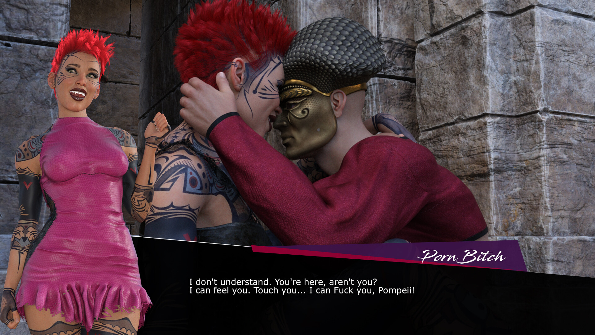In this DLC we discover the real reason to continue this challenge. PornBitch has a big-time boyfriend named Pompeii. They are both very passionate. However, he is married and his powerful wife uses her magic to imprison Pompeii in a type of limbo.