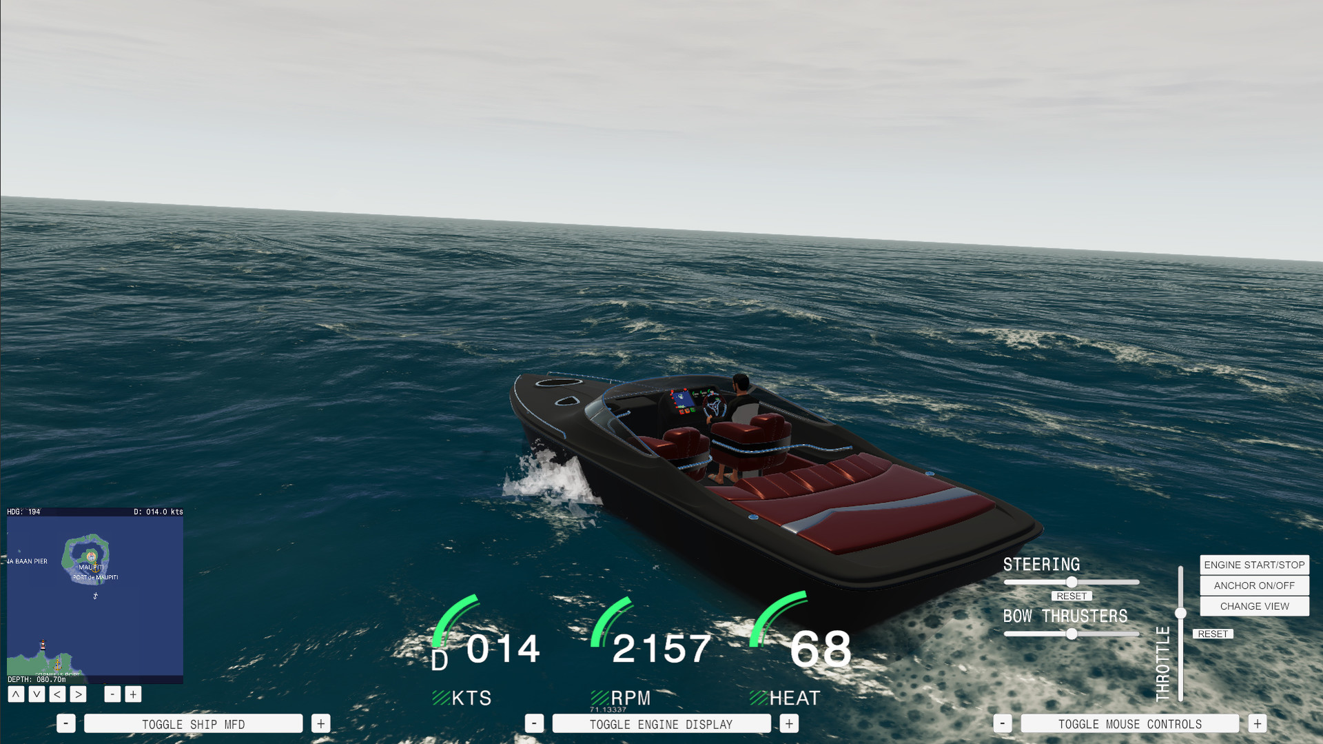 Accurate water and buoyancy physics mean each vessel reacts uniquely and realistically to the variable weather and sea conditions while RADAR, SatNav and buoys (based on real world IALA A buoyage system together with AtoN/NavAid lighting systems) provide a realistic navigation experience, especially in poor weather or pitch black night time sailing.