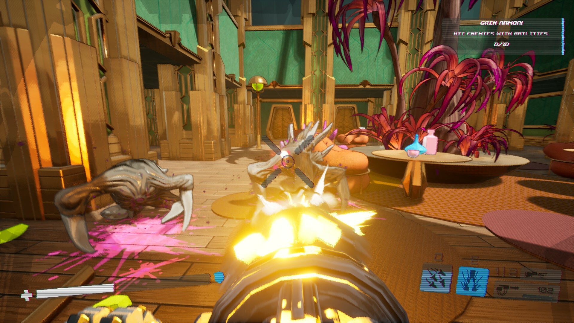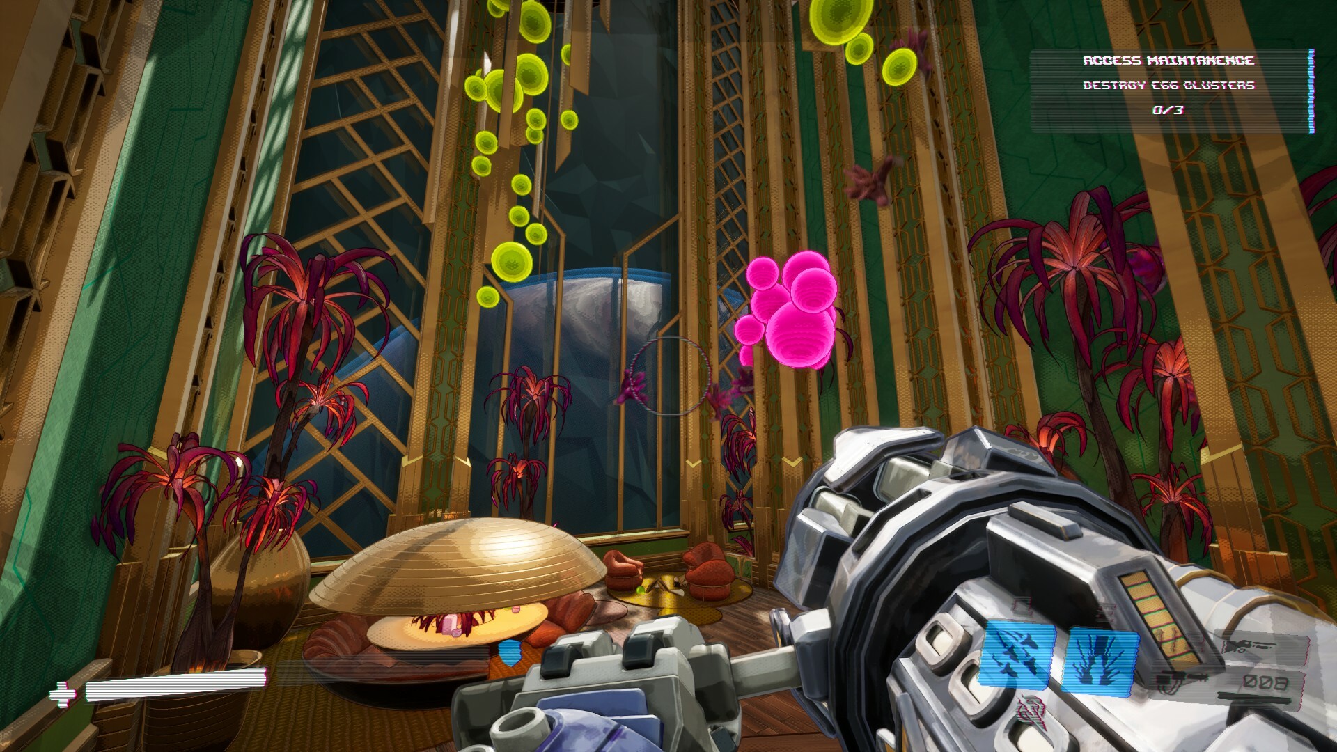‘Oh, Bugger!’ is a first-person shooter set in a luxury space hotel overrun by alien hordes. As a professional alien exterminator, pilot your mech to blast aliens and destroy their eggs, ending the infestation for good!