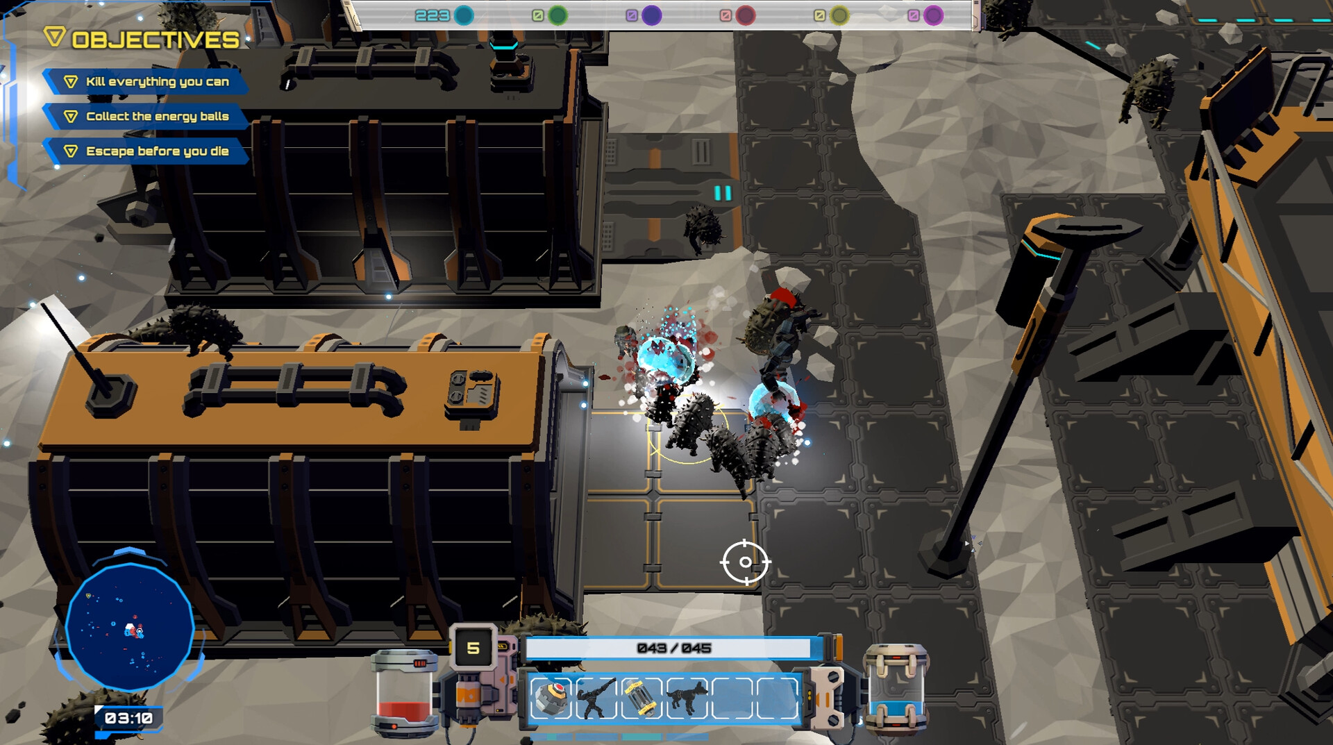 Project Survivor is a bullet hell, a horde survivor, an action roguelite in which in addition to surviving and getting improvements you will have to meet the objectives of each mission to advance in this dystopia.
