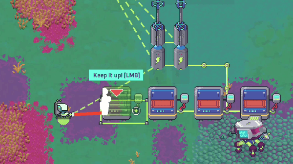 Scout out your surroundings by placing supply lines to provide life support in an oxygen-less environment.