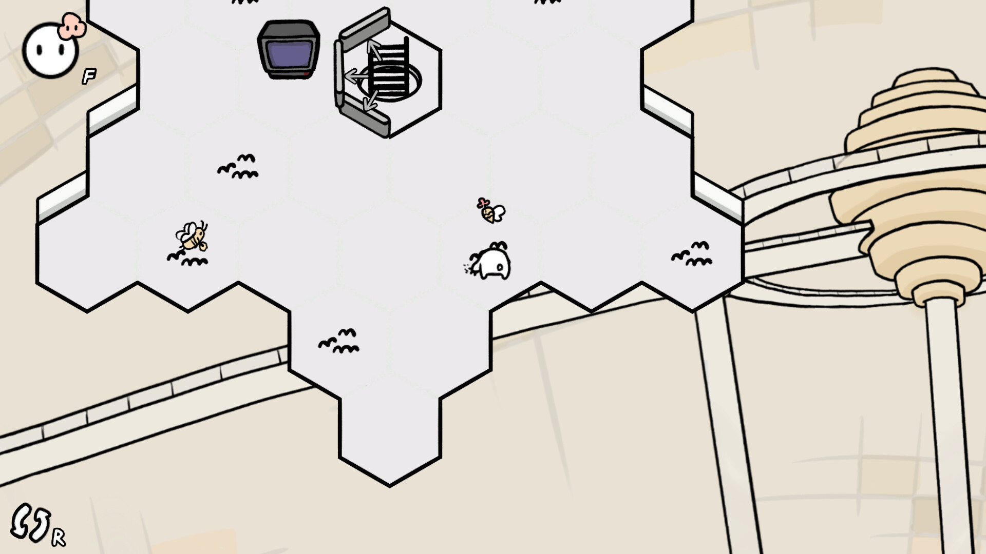 Join Meo and Noth in their adventure to solve puzzles in the simple, hexagonal beehive world!
