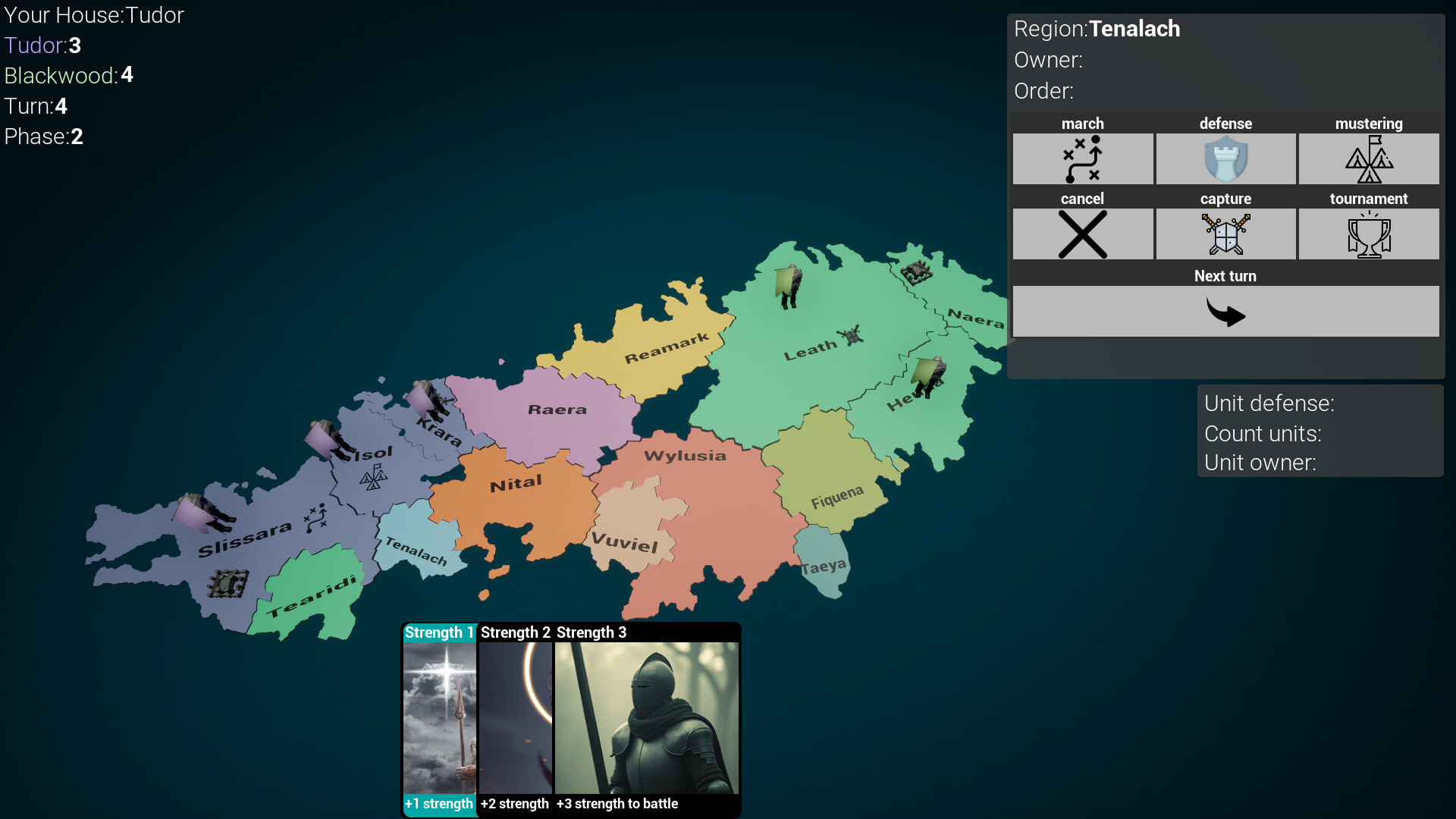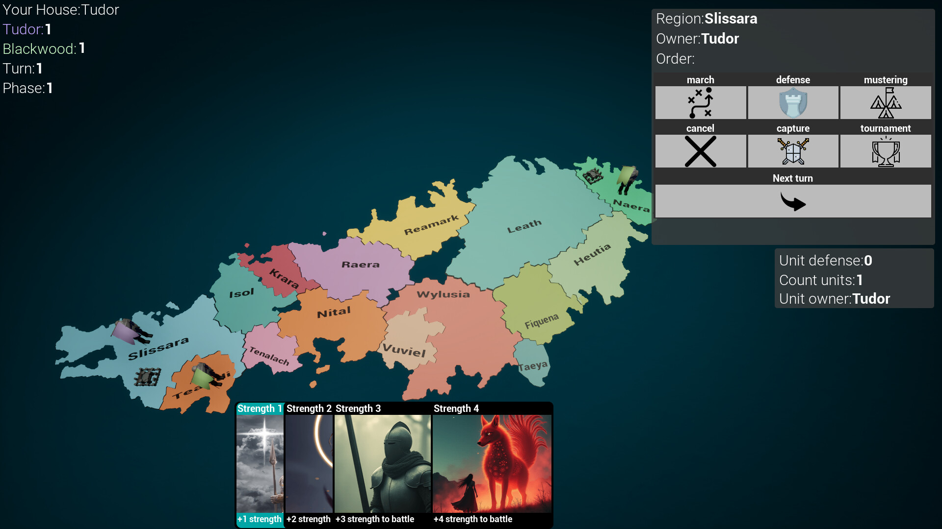 Defend – Adds +1 strength to a unit defending this region during the next turn.