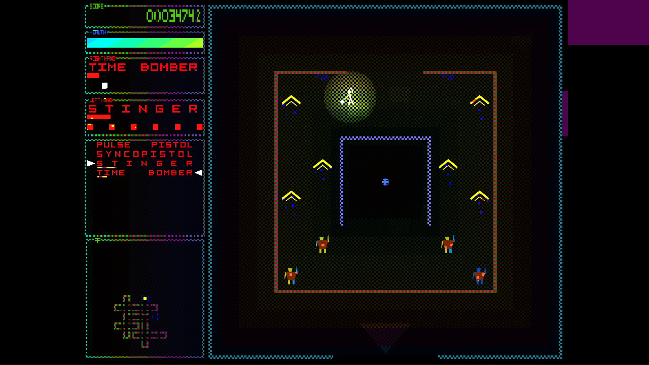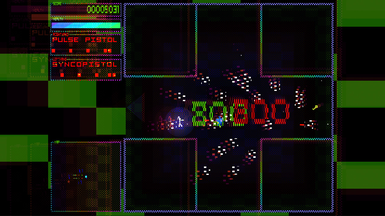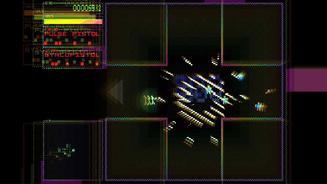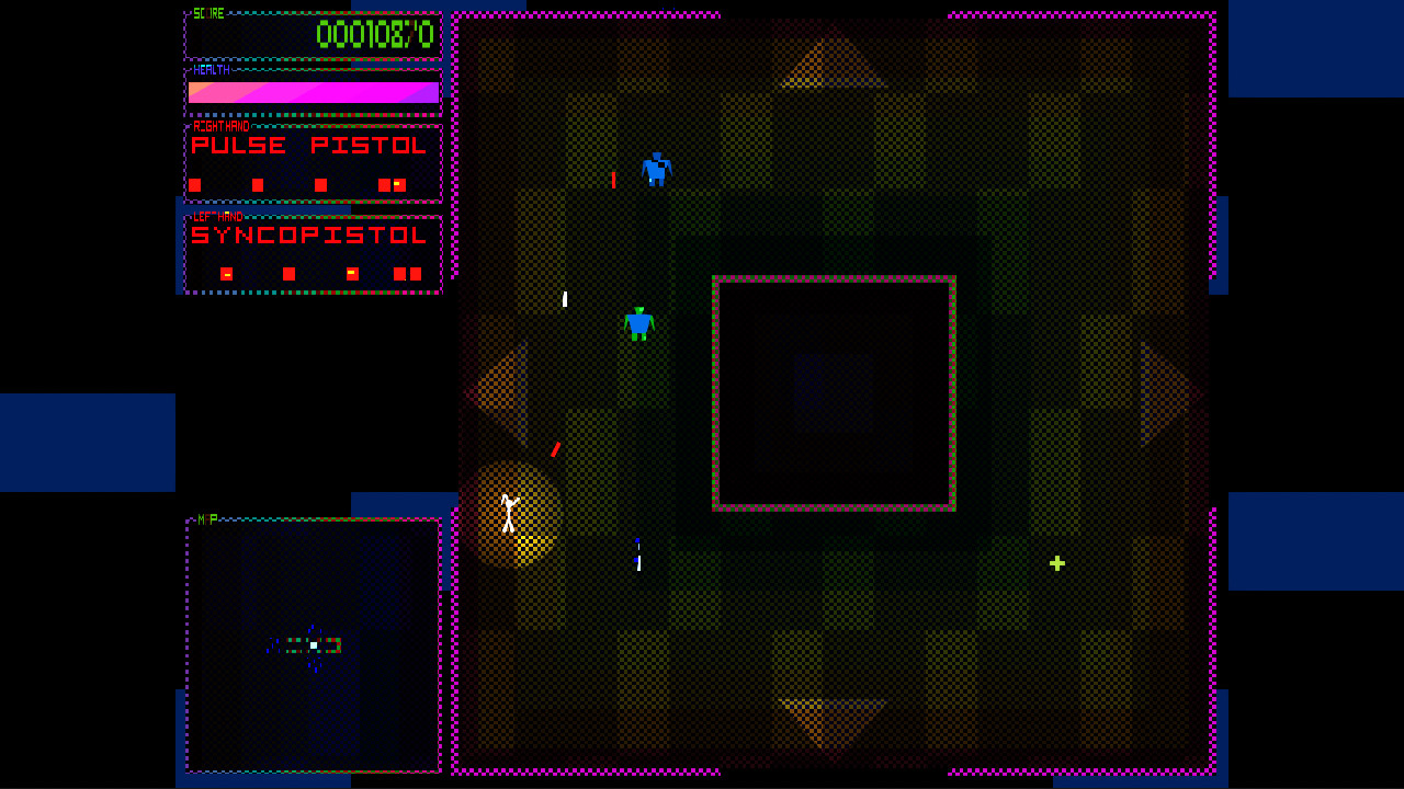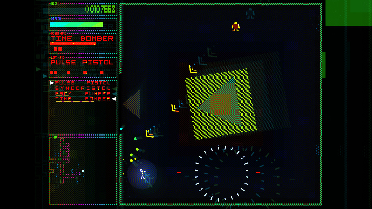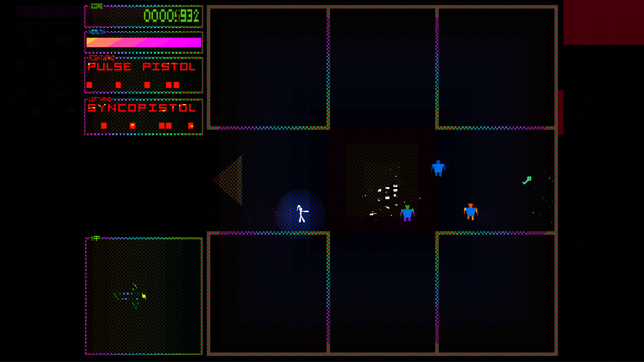 Each weapon you pick up automatically fires to its own rhythm and is synchronized to the game's music.