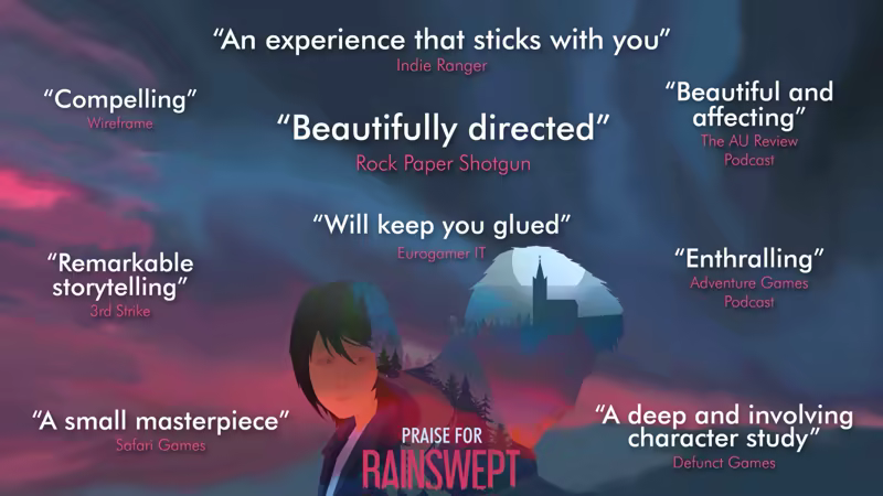Taking inspiration from works like Twin Peaks, Deadly Premonition, and Night in the Woods, Rainswept is a character-driven drama that balances tragedy and melancholy with humor and beauty to deliver a life-affirming, cathartic experience.