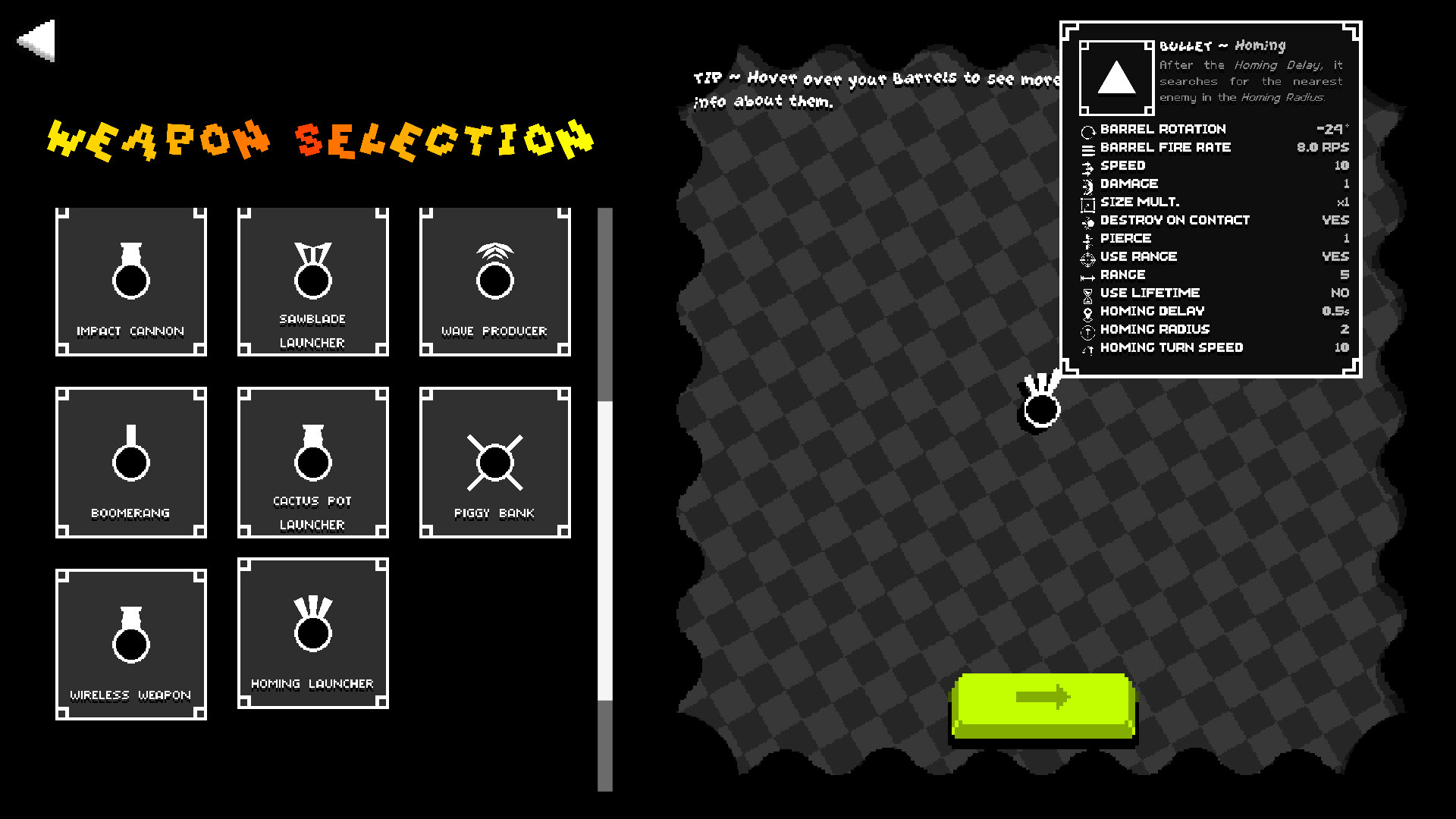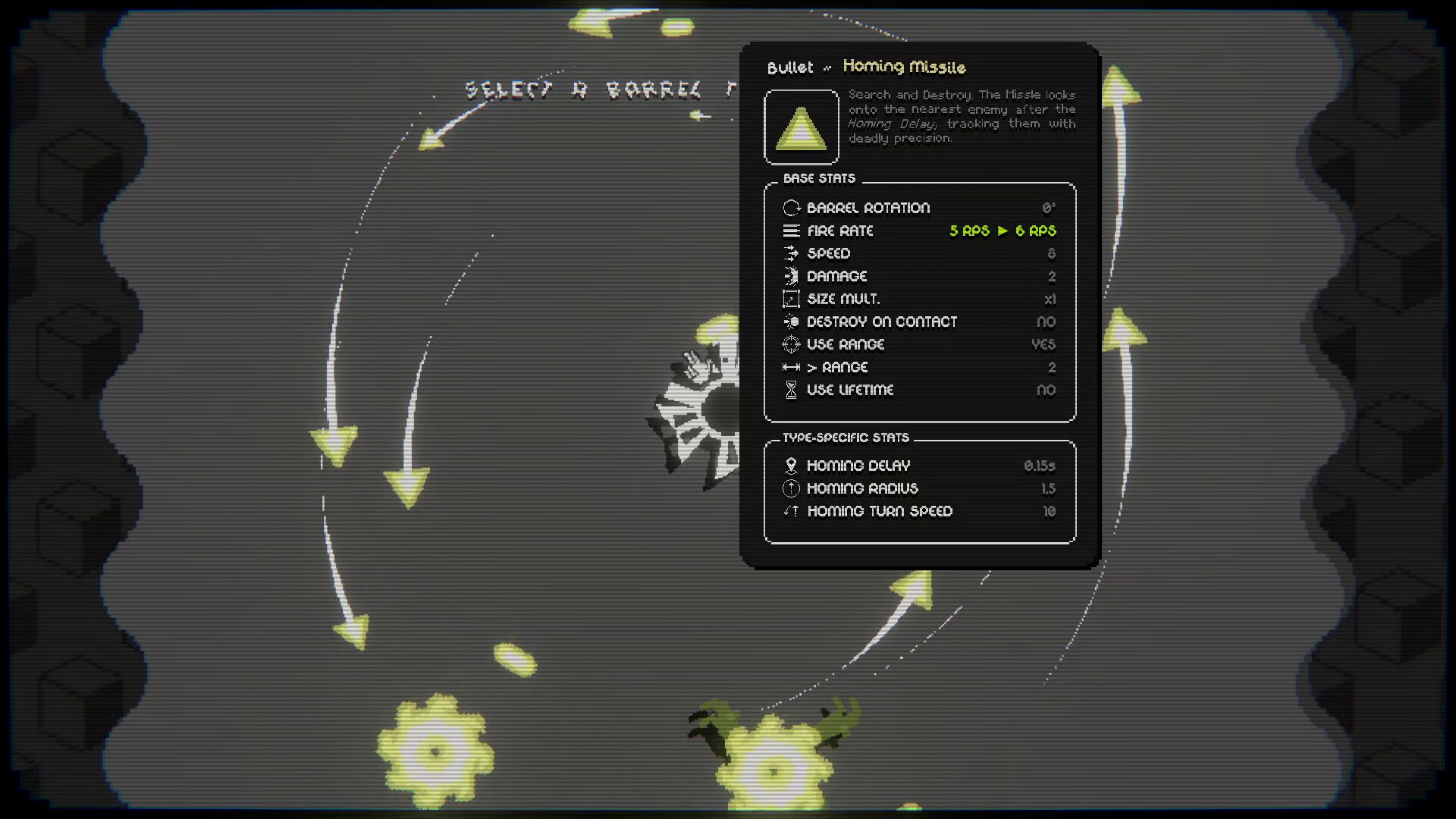 Build the ultimate weapon by combining multiple Barrels, each firing different types of Bullets, from homing missiles to explosive rounds. Every upgrade shapes your weapon into a unique, enemy-shredding machine. Tweak individual stats, from the Fire Rate, to the Rotation of each Barrel.